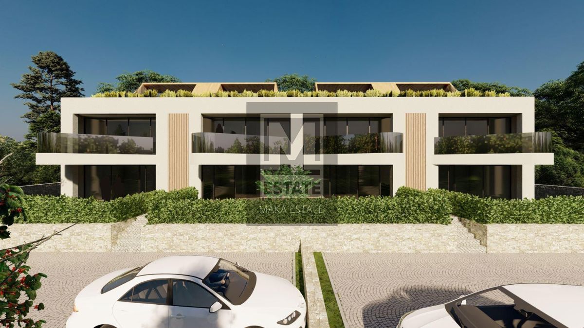 Poreč, surroundings, luxurious apartment with roof terrace! A beautiful, modern apartment under construction is for sale, located in a small tourist town only 8 km from the city of Poreč and only 3 km from the sea! The apartment is located on the first