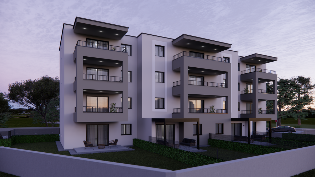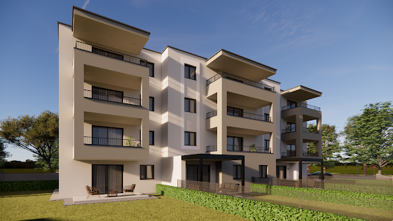 Poreč, surroundings, two-bedroom apartment with sea view! An attractive apartment in a new building is for sale in a quiet place near Poreč, only 2 km from the sea and 8 km from the center of Poreč. This property offers a comfortable and practical way o