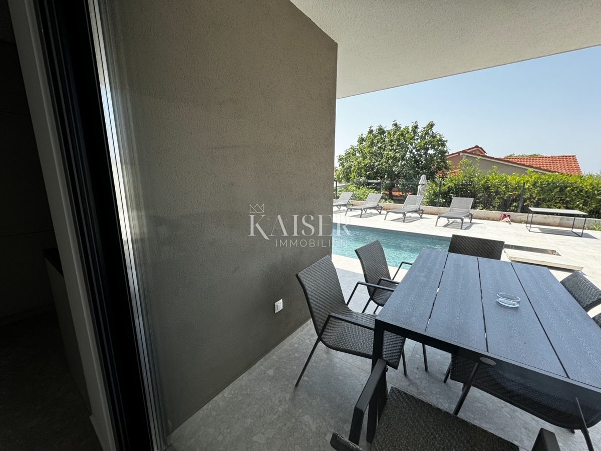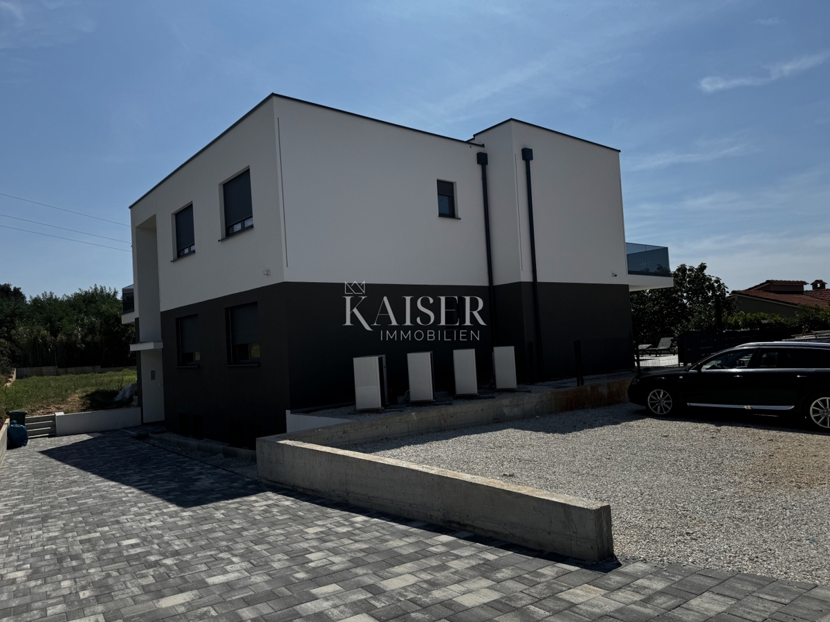 Kaiser Immobilien presents a ground floor apartment in a luxury villa under construction in Nova Vasa near Poreč. The modern building with luxury apartments and sea view will have four residential units. The apartment is located on the first floor of a bu