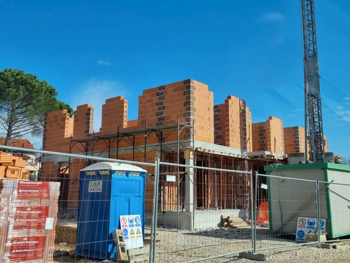 There are three beautiful smaller residential buildings under construction, with one-story or two-story apartments. Each building consists of a ground floor and a first floor The apartment is located on the ground floor, and it also has a garden of 66 m
