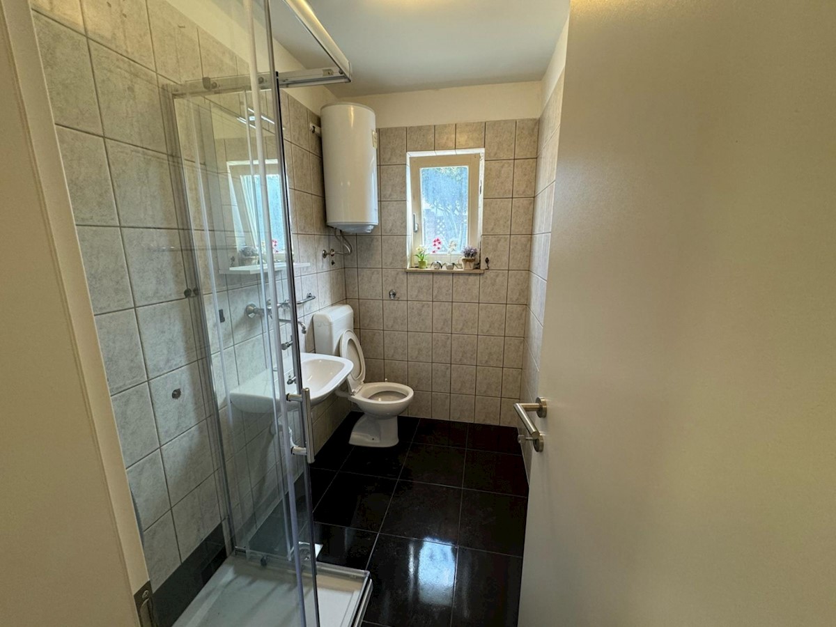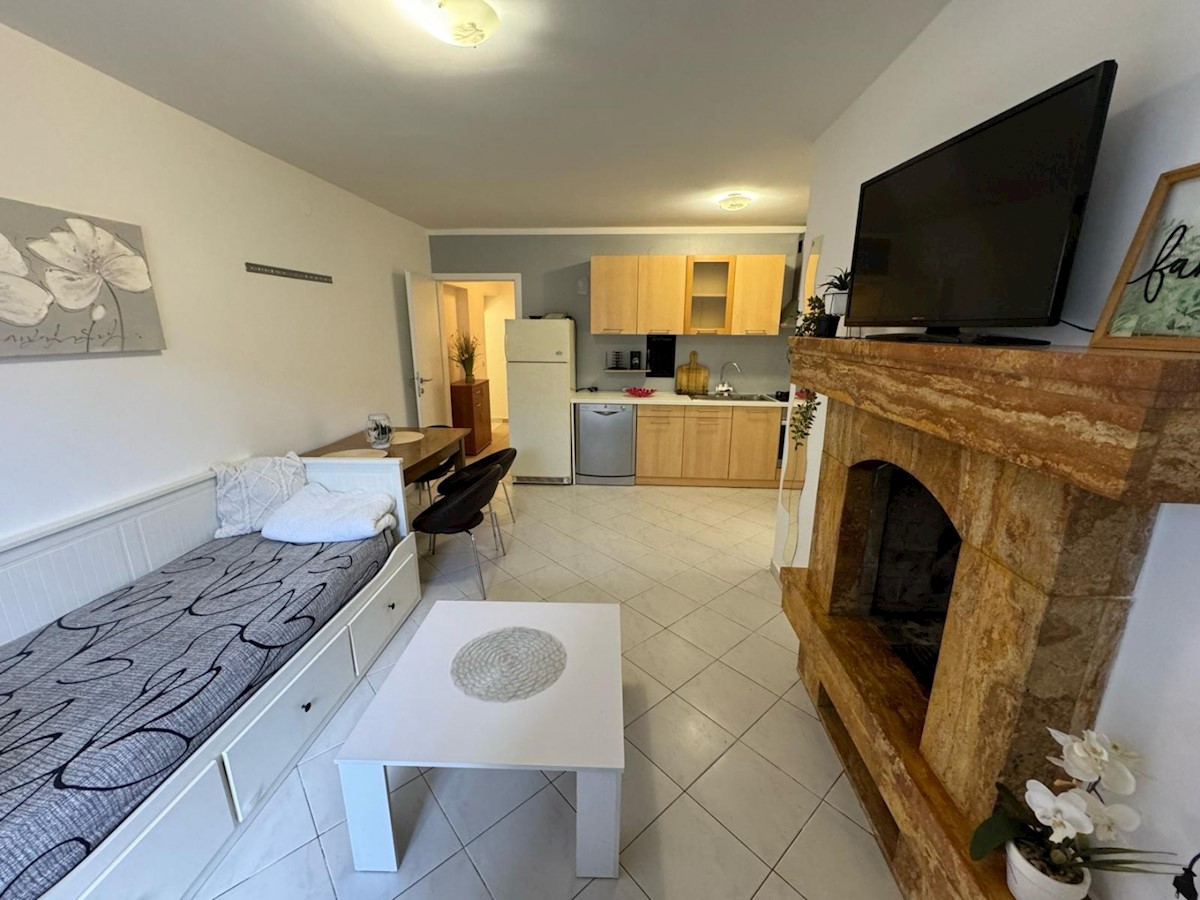 In the vicinity of the city of Poreč, there is an apartment for sale located in the basement of a residential building with a total area of 46.41 m2. The apartment has two bedrooms, bathroom, kitchen, living room and terrace. The apartment has two stora