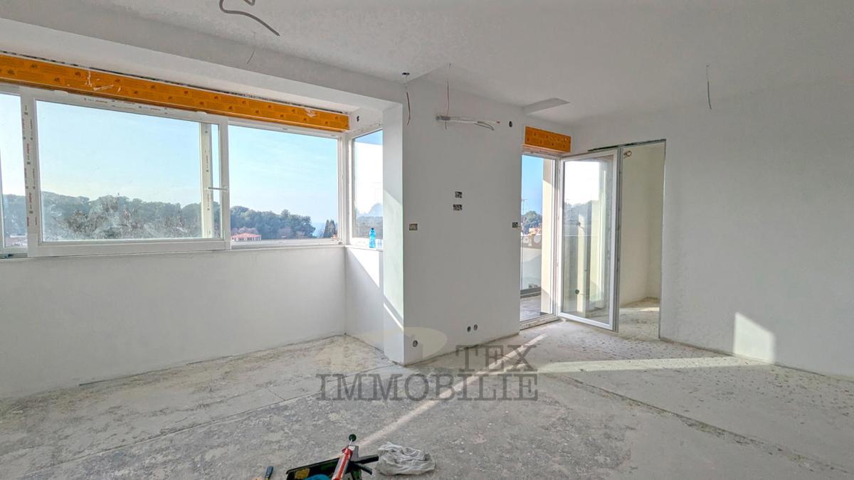 A beautiful apartment on the third floor of a residential building is located just 300 meters from the first beaches and 400 meters from the old town center of Poreč. The apartment, with an area of 68 m², consists of a living room, a kitchen with a dining
