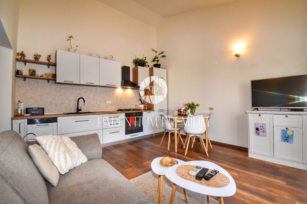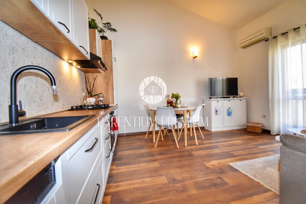 Istria, Funtana In a building with a total of 6 apartments, on the second floor there is this beautifully decorated apartment with an area of 53.45 m2. The apartment consists of an entrance hall, a kitchen with a dining room, a living room with access