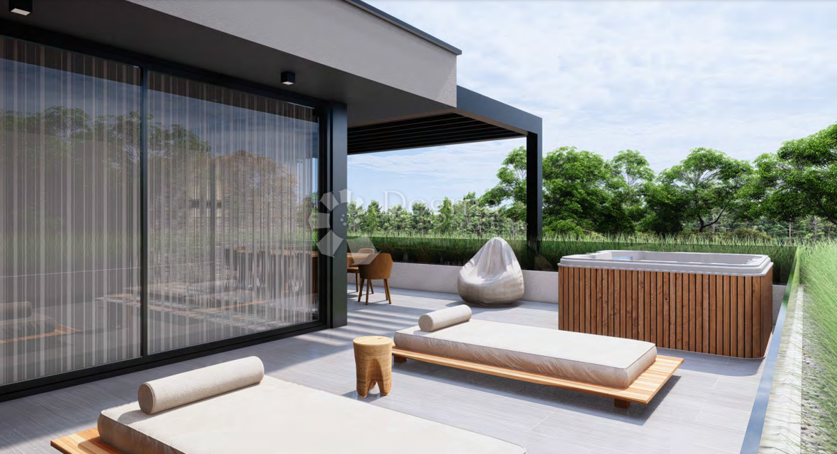 The apartment covers a total area of 100 m2, with a well-designed arrangement of rooms. The entrance hall leads to a spacious living room, dining room and kitchen that are integrated in an open space concept, creating an airy and bright space for social