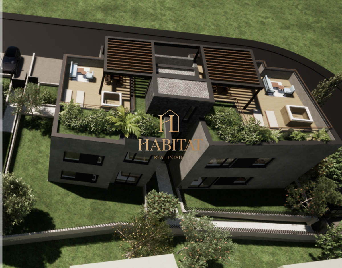 Near the center of Poreč, a luxurious apartment on the first floor with a garden and a roof terrace, offering the perfect combination of comfort and elegance. The apartment is located in a building with four residential units, 1 km from beautiful beaches