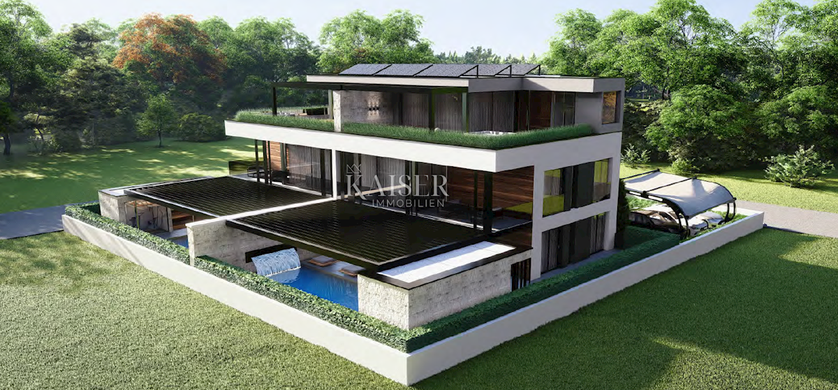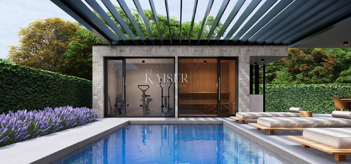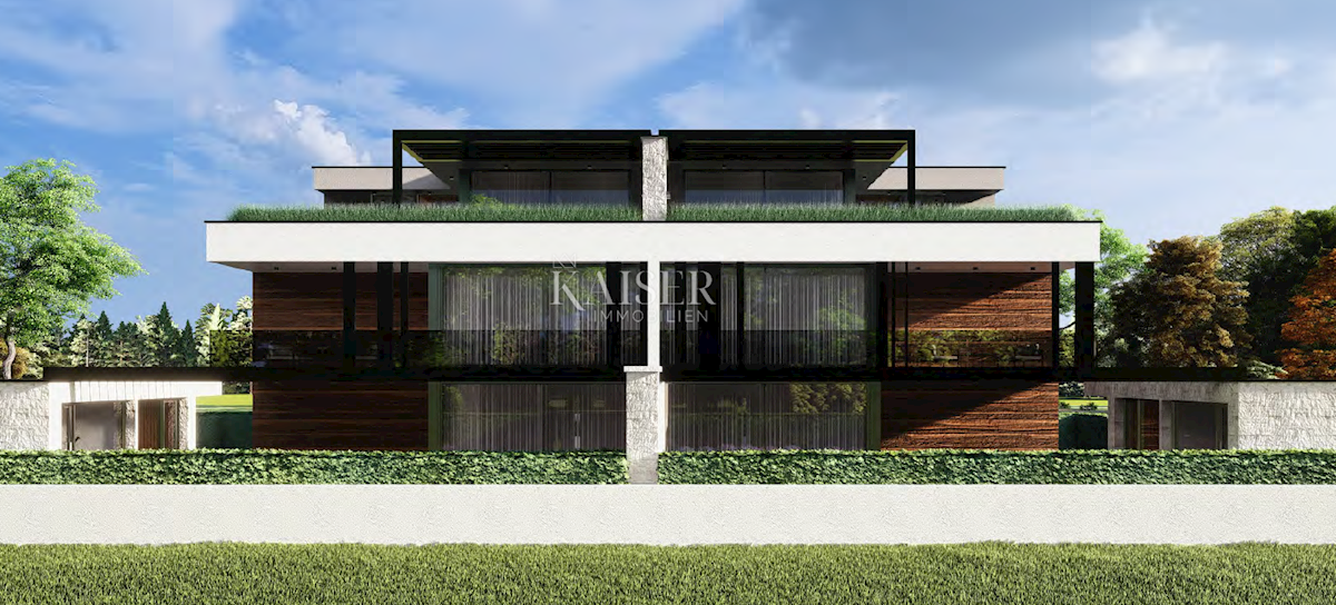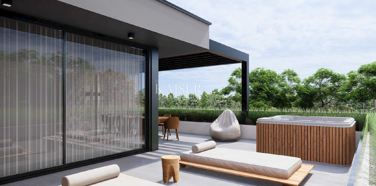 Kaiser Immobilien presents a wonderful, luxurious new two-story apartment, with an equipped roof terrace and a view of the sea. The apartment is located not far from the city of Poreč, only one kilometer from the sea and the first beaches. The position of