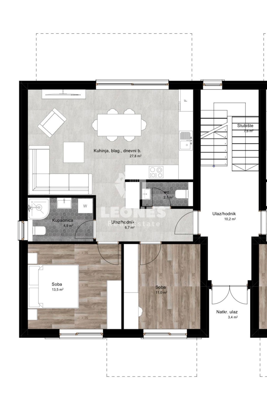 Spacious apartment on the ground floor with a garden in Poreč A quality apartment with a garden on the ground floor in the vicinity of Poreč is for sale. The building is located in a small, quiet neighborhood of the city of Poreč. Construction has begun