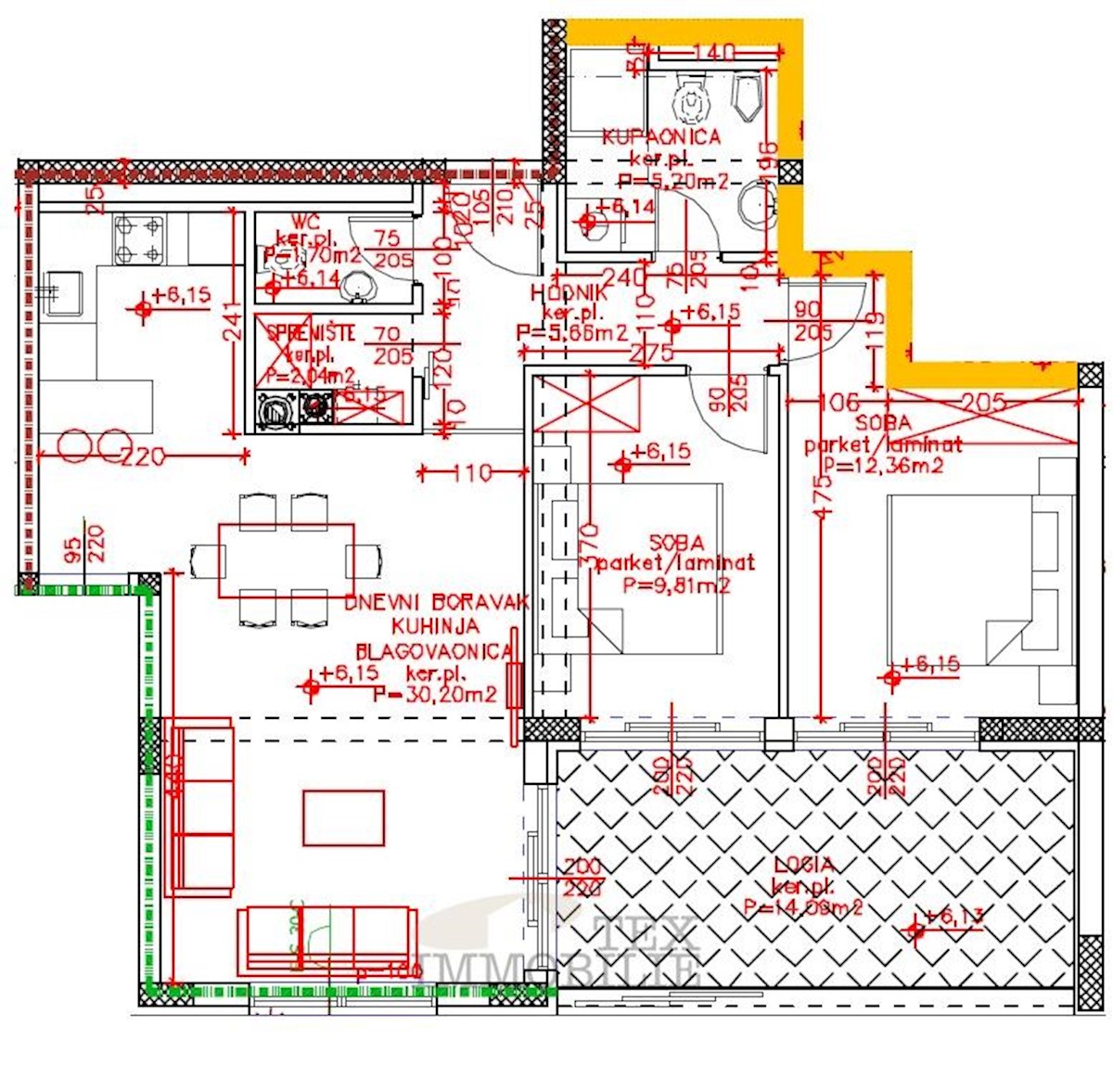 A new apartment with a surface area of 80 m2 is for sale, located in the heart of Poreč, on the third floor of a new residential building. This spacious apartment offers a comfortable entrance hall, a living room connected to the dining room and kitchen