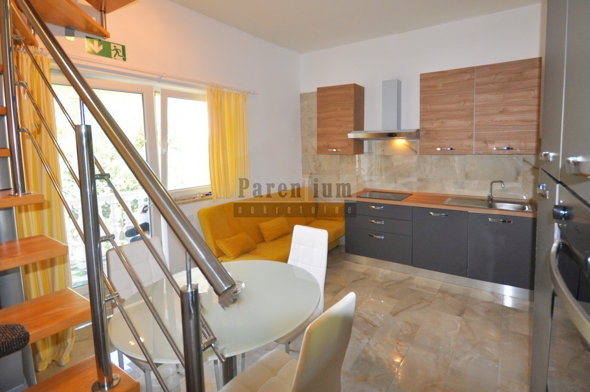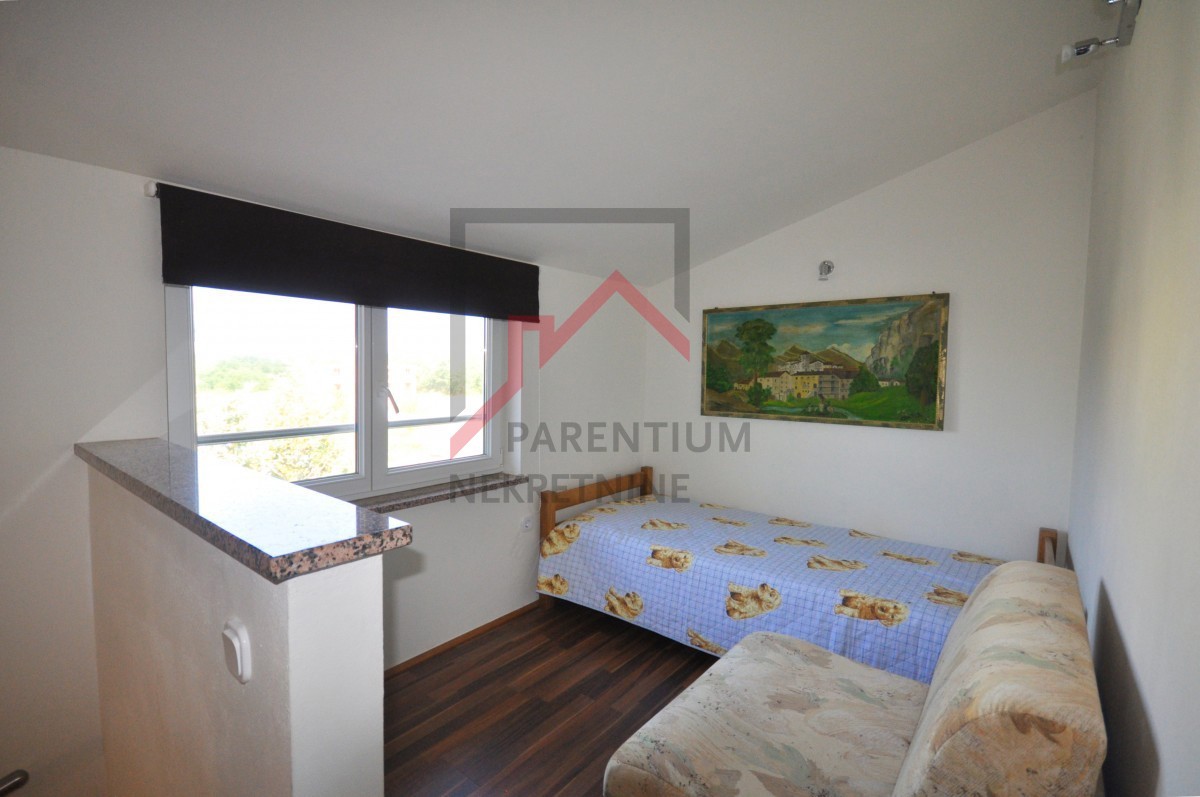 Poreč, surroundings, two-story apartment with a beautiful garden! In the suburbs of the city of Poreč, only 3 km away from the center, a two-story apartment with a beautiful garden and a parking space is for sale. The total size of the apartment is 52 m²