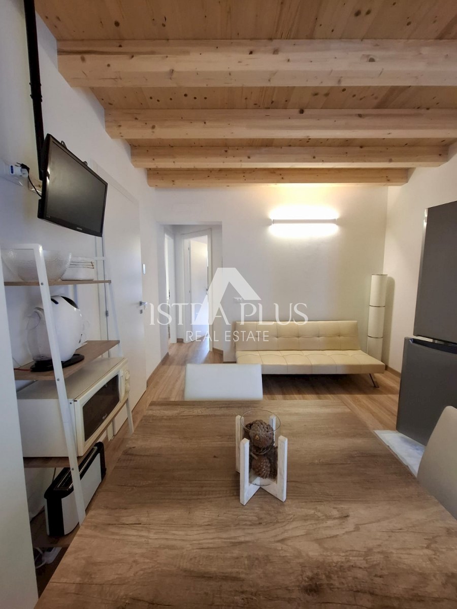 S231 Nicely renovated apartment of 40 m2, located in a beautiful stone house with 4 apartments, located in the center of Vrsar, in a quiet location only 500 meters from the sea. The apartment is located on the 1st floor and consists of a living room with