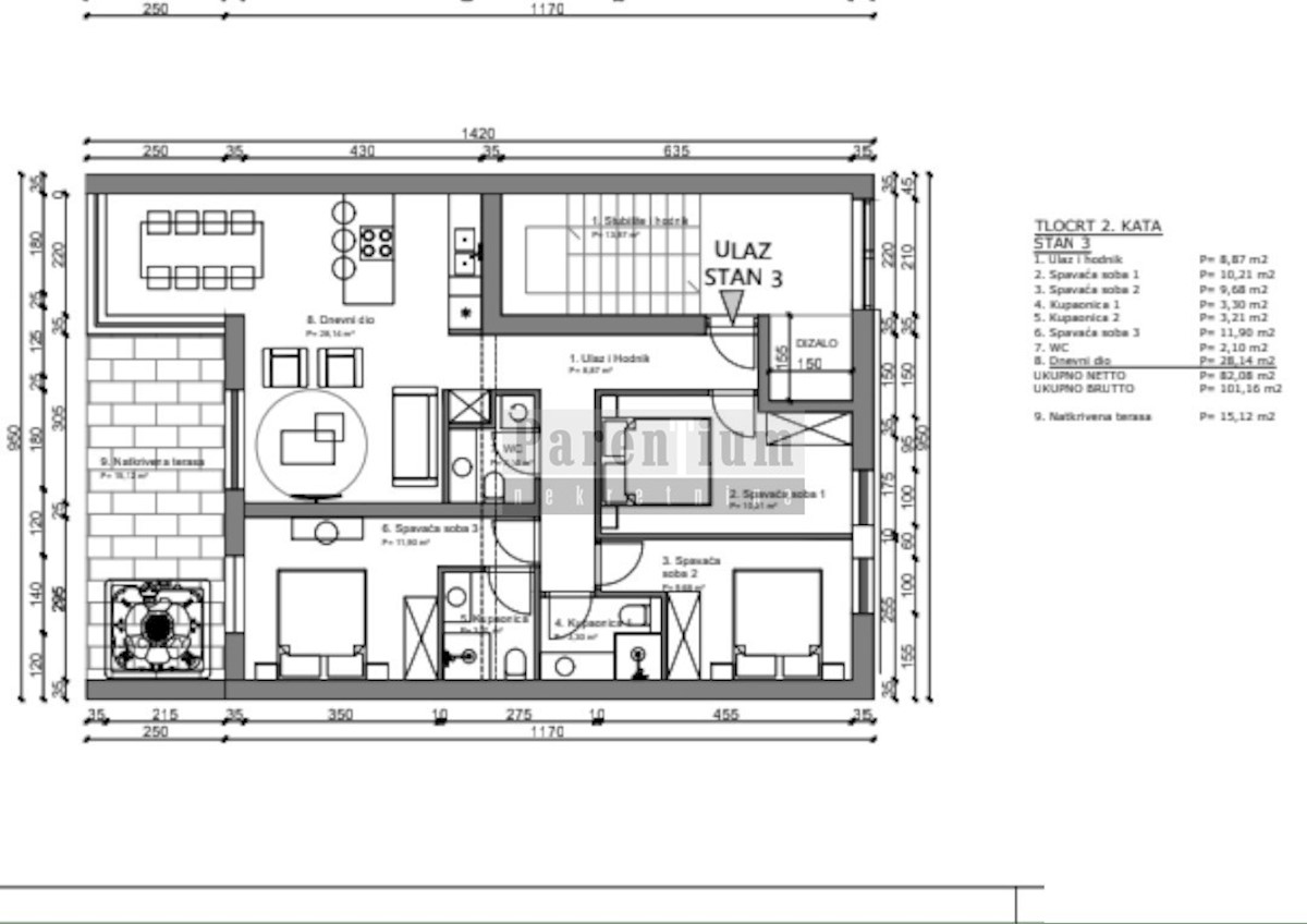 Istria, Poreč center Poreč, exclusive three-bedroom apartment on the top floor with a panoramic sea view! In Poreč, near the sea, there is a three-bedroom apartment on the second floor of a building with an elevator. The open sea view makes it a unique