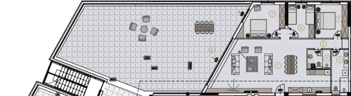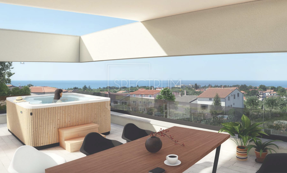 Istria, Poreč Penthouse for sale in a sought-after location in Poreč. The apartment is located on the 3rd floor of a newly built residential and commercial complex consisting of central, southern and northern parts. The area of the apartment is 146.57