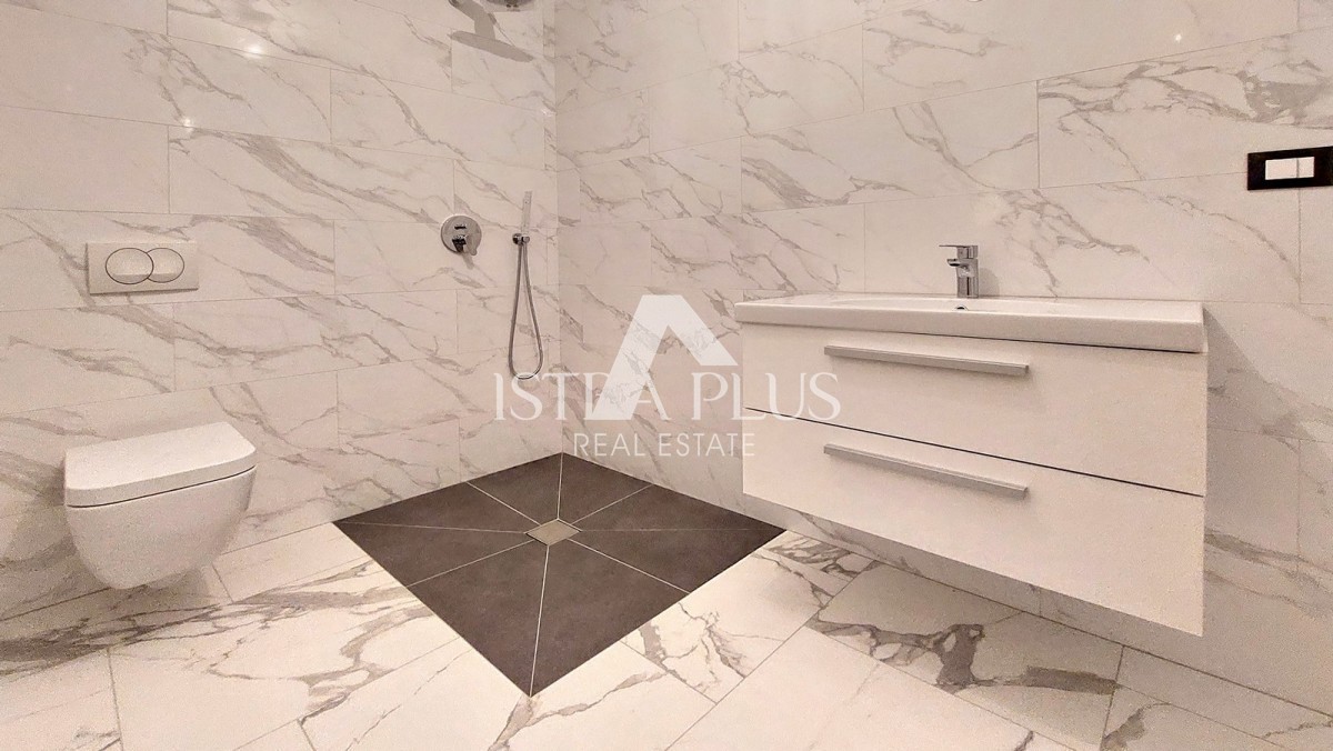 S260 A new apartment of 65 m² for sale in the vicinity of Poreč, consists of an entrance hall, living room, covered terrace, kitchen, two bedrooms and a bathroom. The apartment has PVC joinery with 3 IZO glasses and mosquito nets, air conditioning in all