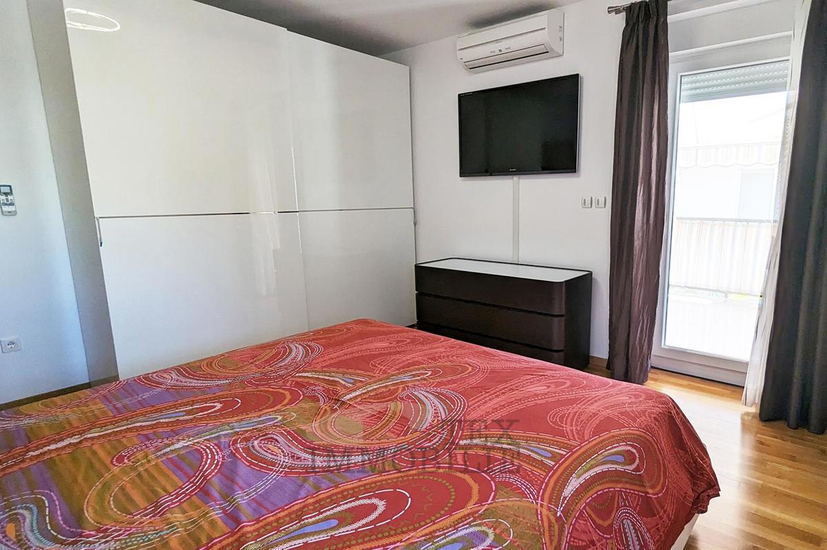 We are selling fully furnished apartment in one of the most desirable locations in Poreč. Situated just 300 meters from the beach in the city center, the apartment offers easy access to all amenities this beautiful city has to offer. The apartment has a