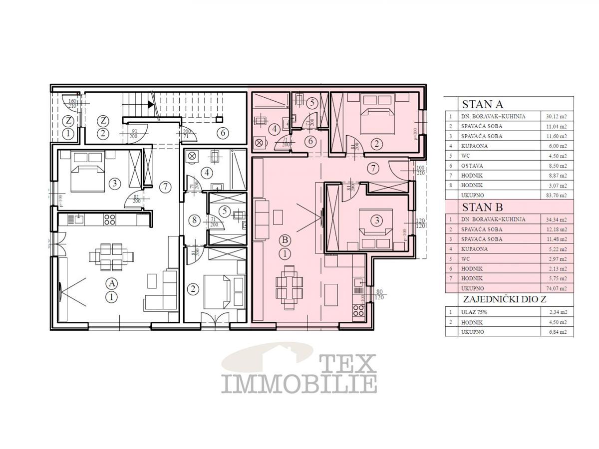 In an exceptionally attractive location, just 600 meters from the beach and 1,000 meters from the city center, there is a three-bedroom apartment under construction with an area of 74.07 m². Situated on the ground floor of a small building with only five
