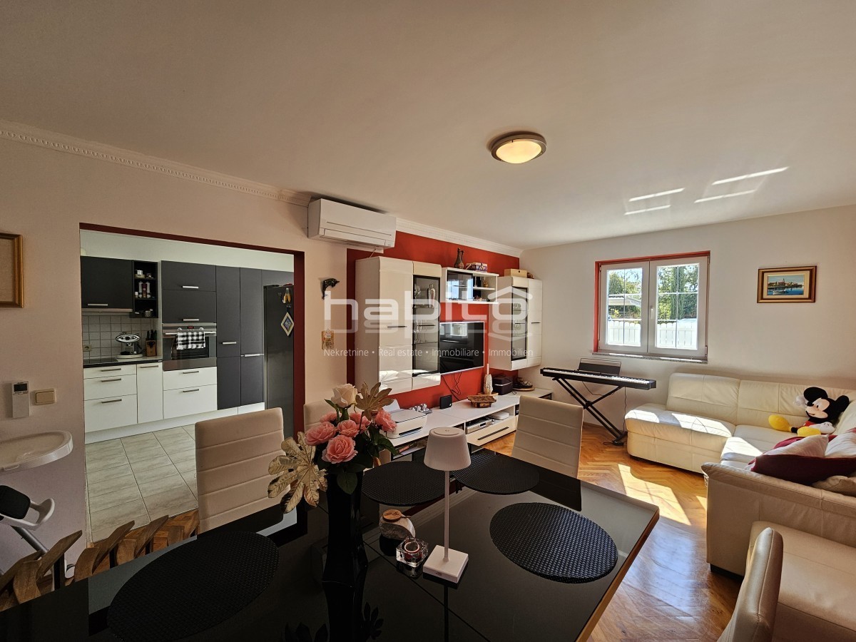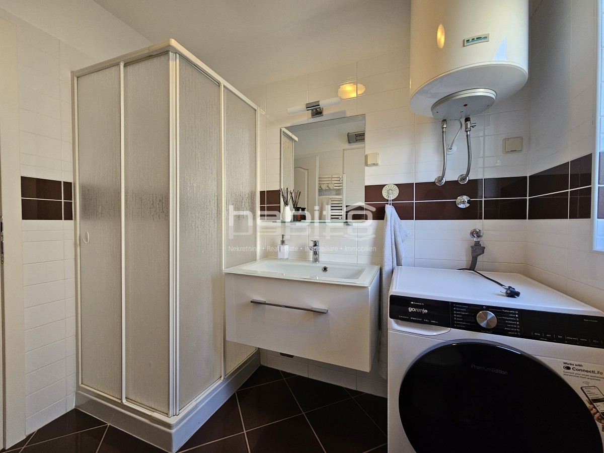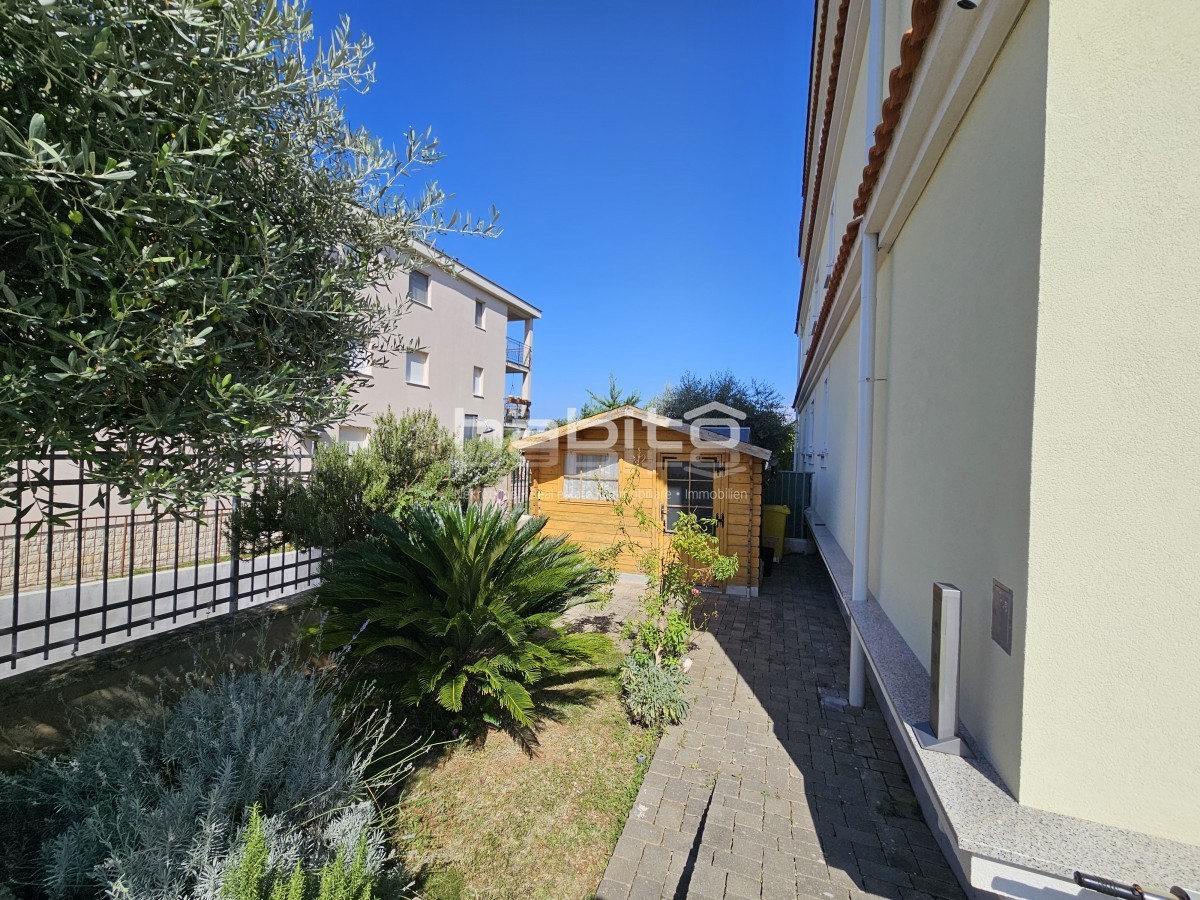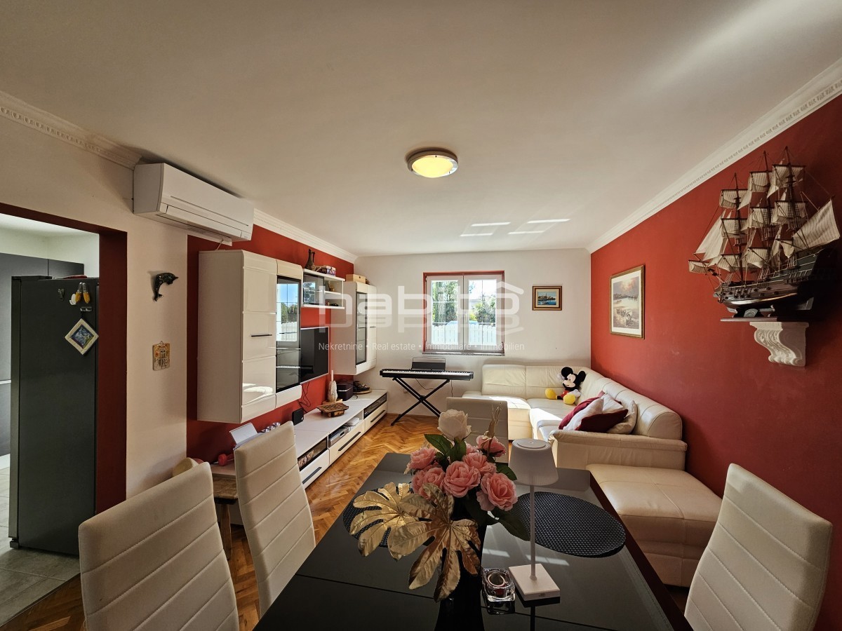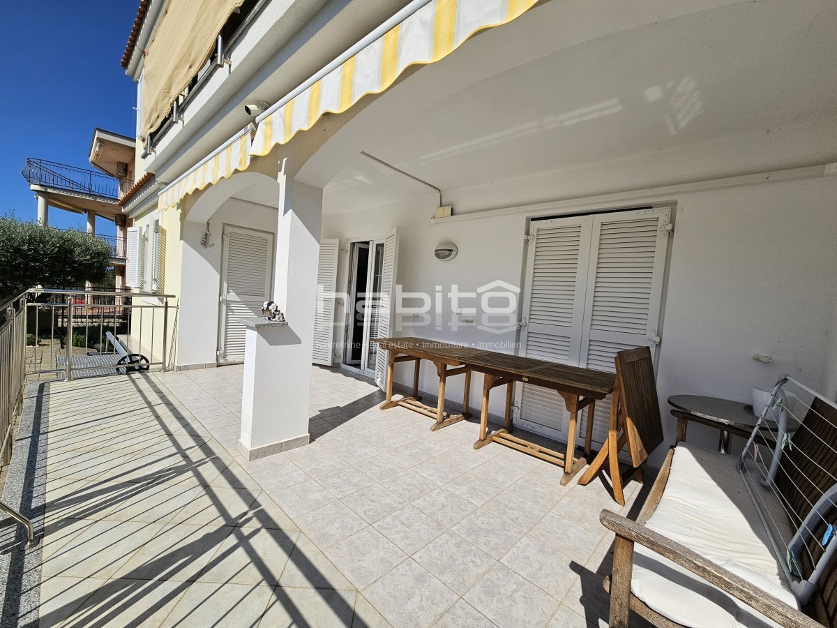 A beautiful apartment for sale on the ground floor of 95 m2 in a quiet environment, only 900 meters from the sea. The apartment consists of 2 bedrooms, 2 bathrooms, a spacious living room with a dining room, a kitchen, a storage room in the hallway and a