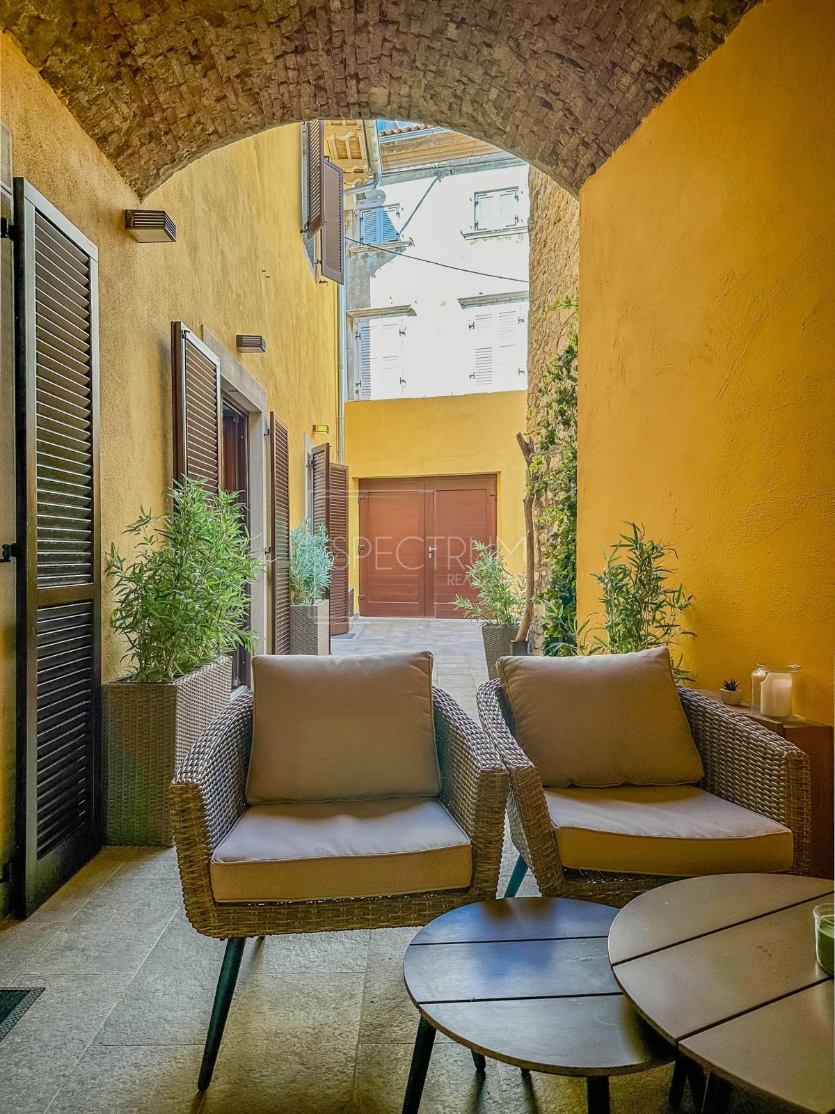 Istria, Poreč Apartment for sale on the ground floor with a yard in the center of Poreč. The apartment is located on the ground floor of a smaller residential building with 3 residential units. The area of the apartment is 95.30 m2. The apartment cons