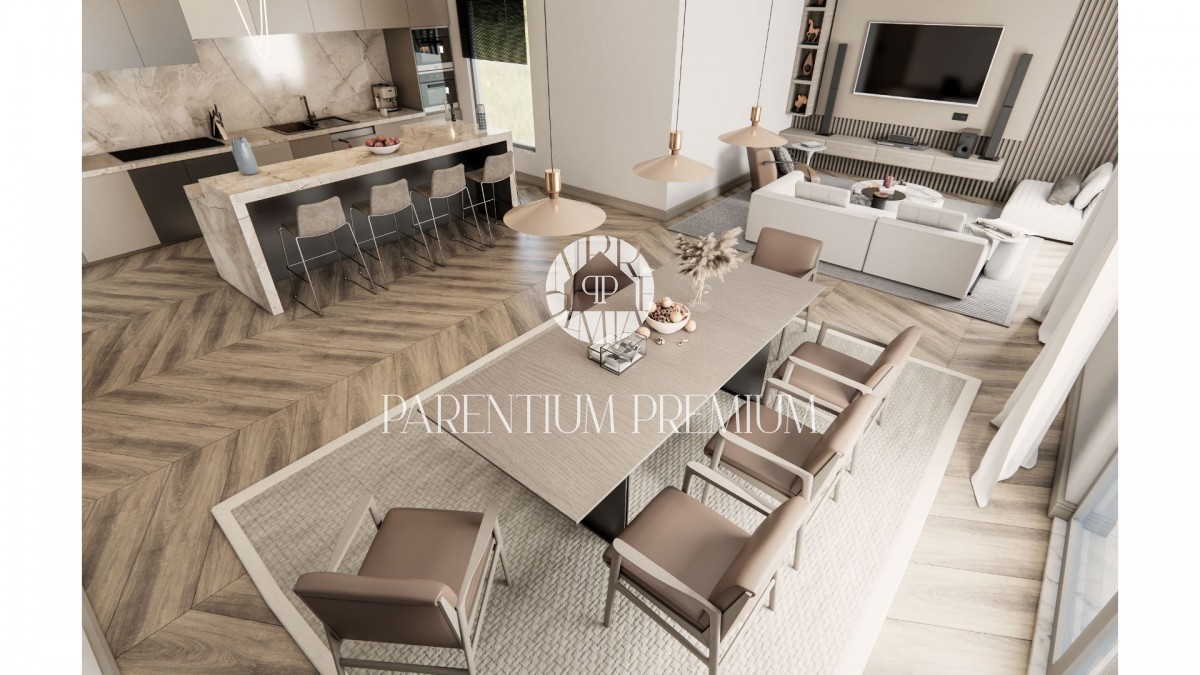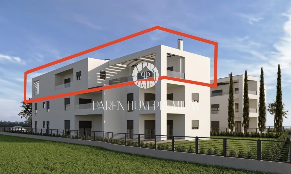 Istria, Poreč - 900m from the sea In a quiet settlement, close to the sea and the city of Poreč, this phenomenal penthouse with a beautiful view of the sea is for sale, with a total area of 173.6 m2. The penthouse consists of an open living room, kitc