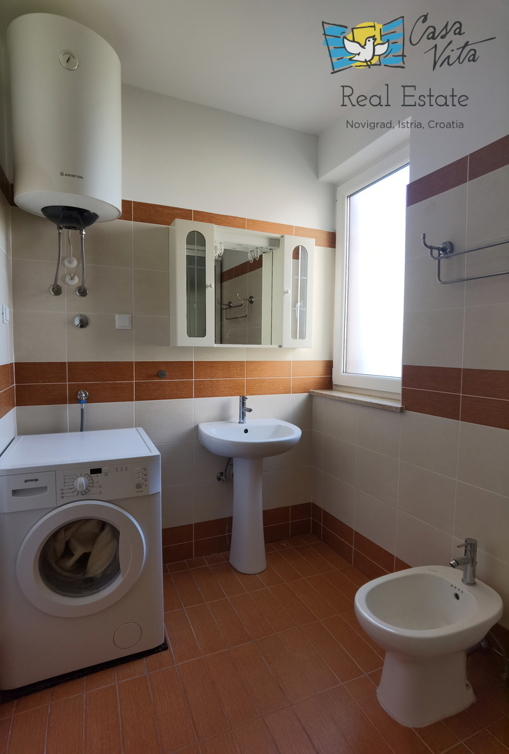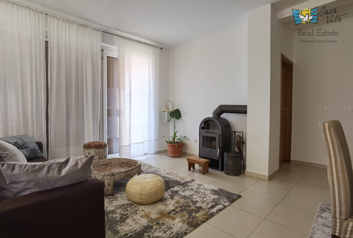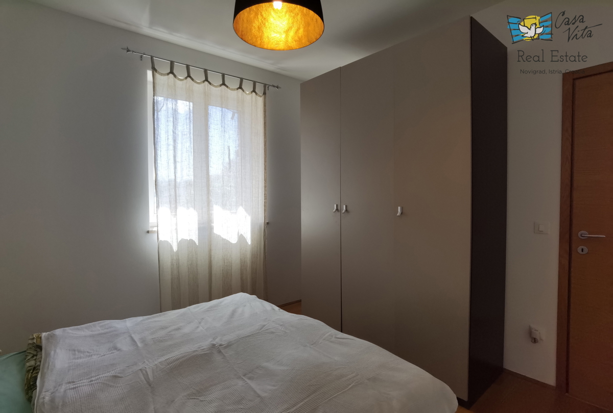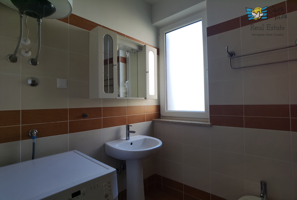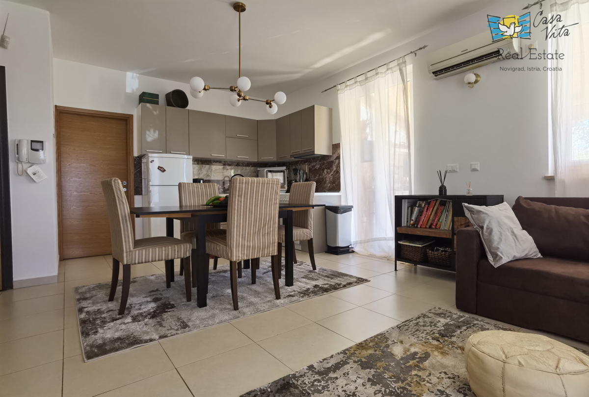 Istria, Poreč Only 4km from Poreč and 3km from the sea, on the ground floor of a lovely apartment building, there is for sale this ground floor apartment. The apartment consist of two bedrooms, bathroom and open space kitchen with living room. From the