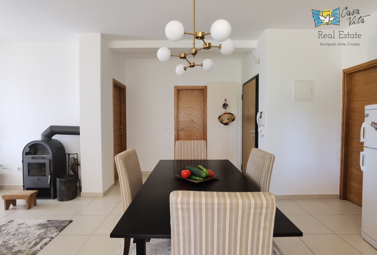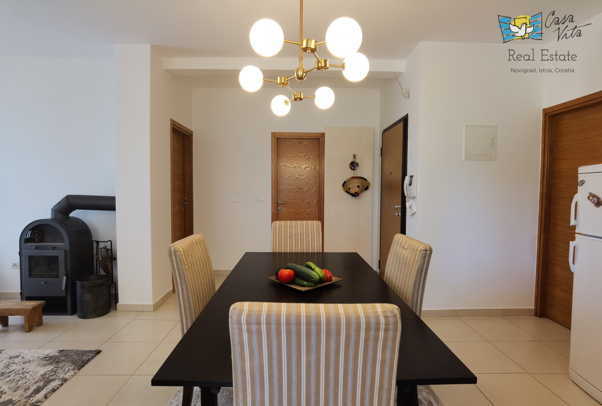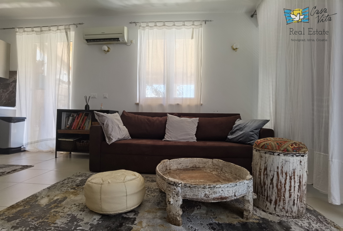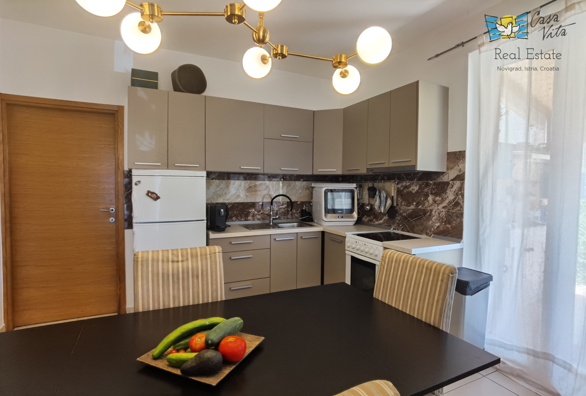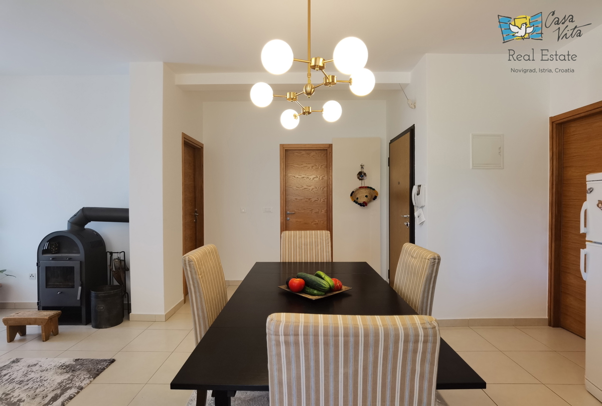 Istria, Poreč Only 4km from Poreč and 3km from the sea, on the ground floor of a lovely apartment building, there is for sale this ground floor apartment. The apartment consist of two bedrooms, bathroom and open space kitchen with living room. From the