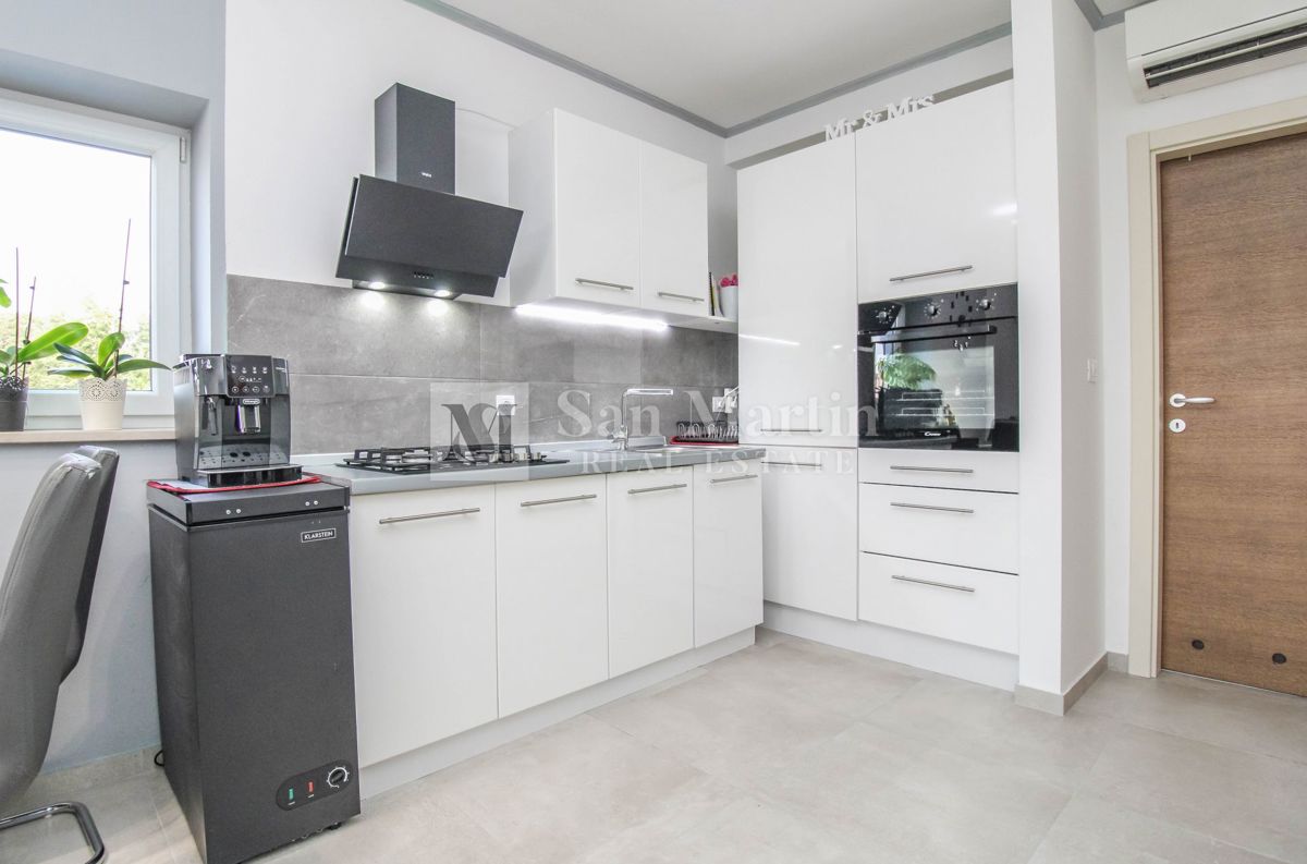 Istria, Poreč, surroundings - beautiful, modern apartment in a quiet street on an attractive location. Not far from the center of Poreč and lovely beaches, this apartment is located in a peaceful street and has a total area of 41m². It is situated on the