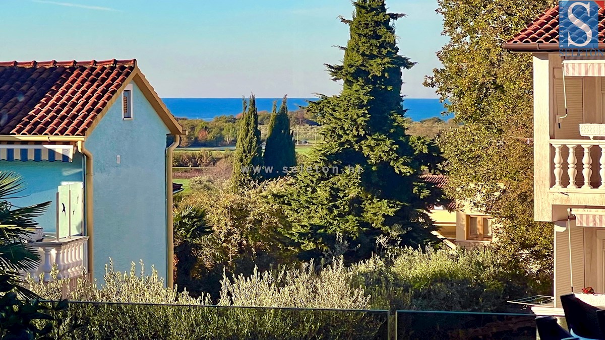 An apartment of 41 m² is for sale in the vicinity of Poreč, consisting of a living area, a terrace, a bathroom and a bedroom. The apartment is located on the first floor, it is sold furnished, it has air conditioning, a view of the sea and one parking spa