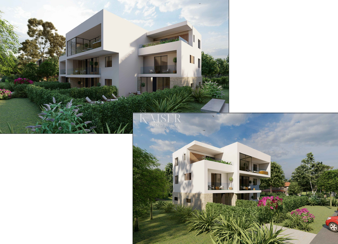 Kaiser Immobilien offers for sale a modern apartment on the ground floor, newly built, in a very attractive location. The apartment is located in a part of the city of Poreč, only 800 meters from the sea and the beach, in a very popular and beautiful loca