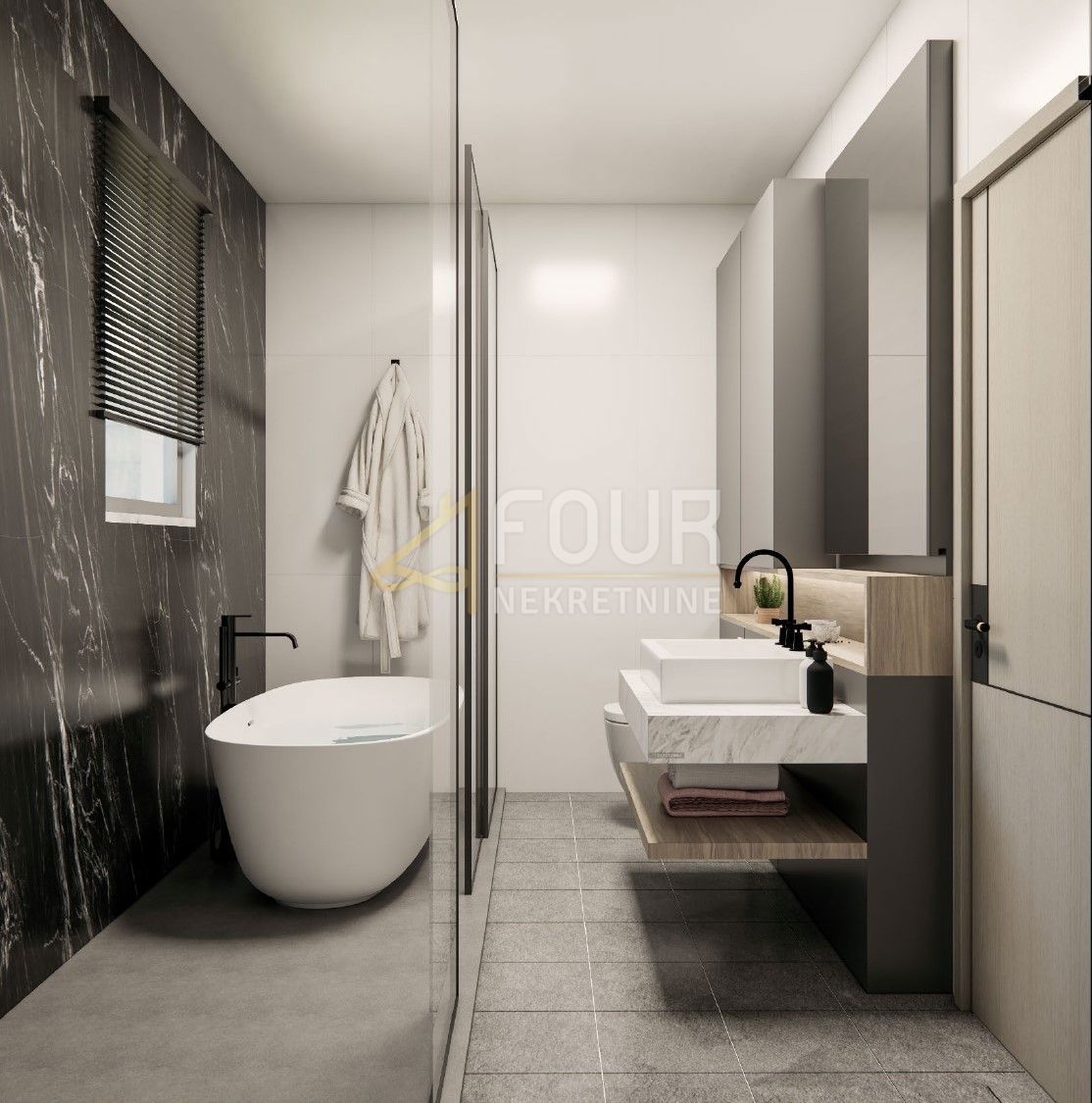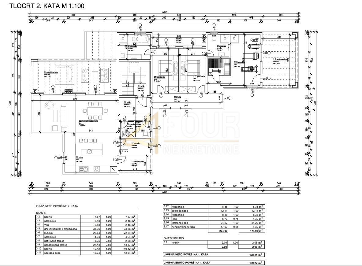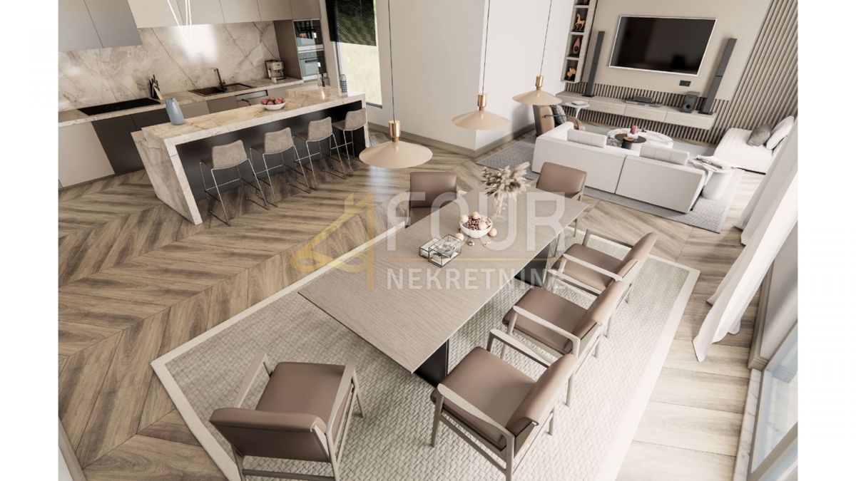 For sale is an excellent apartment - penthouse of 204.49m2 in a top new building located in an excellent and sought-after location in Poreč! It consists of an entrance hall, kitchen with dining room and living room in an open space with access to two terr