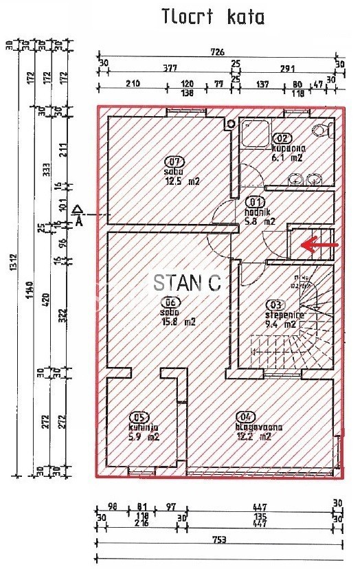 S289 Two-storey, family apartment of 116 m², consists of an entrance hall, living room, kitchen, dining room, bedroom and bathroom on the first floor, and 3 bedrooms and a bathroom in the attic. The apartment was renovated in 2010, is being sold furnishe