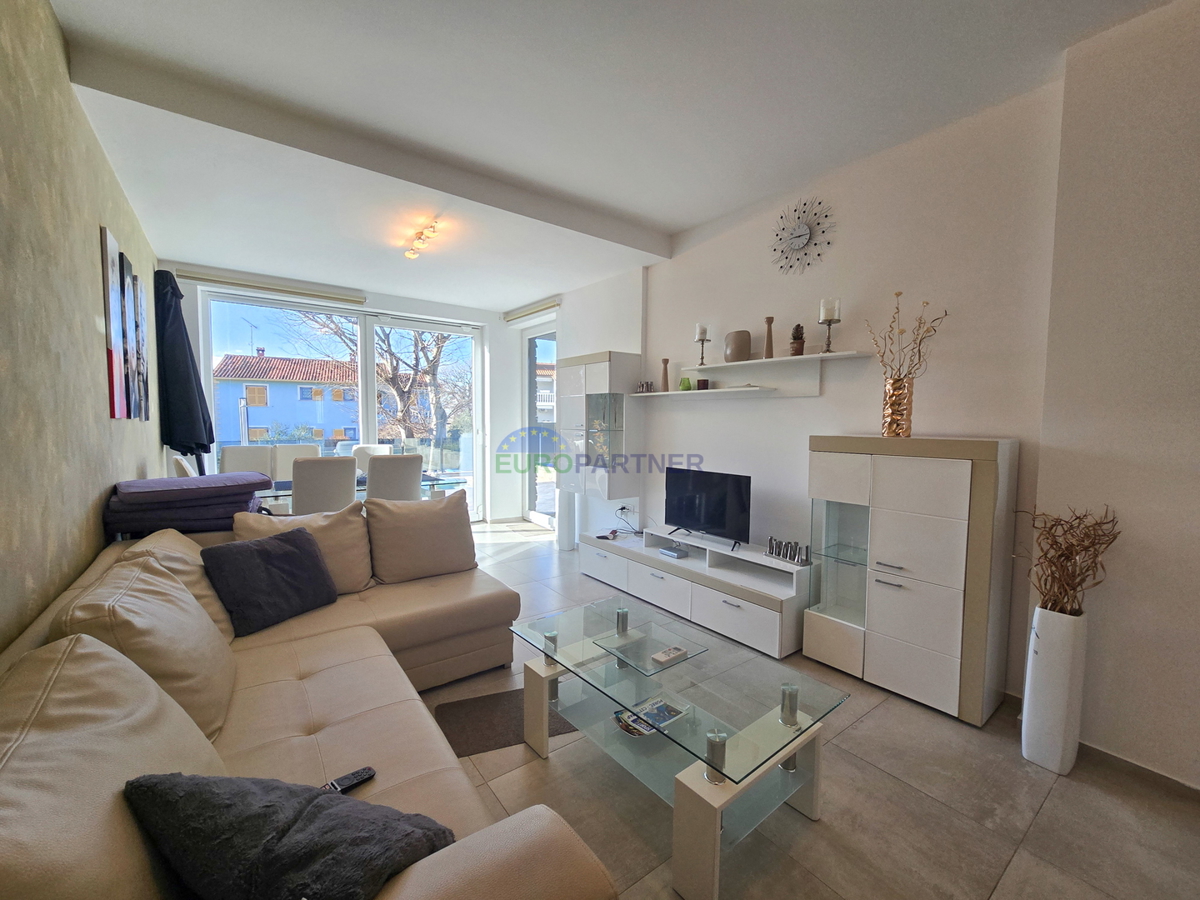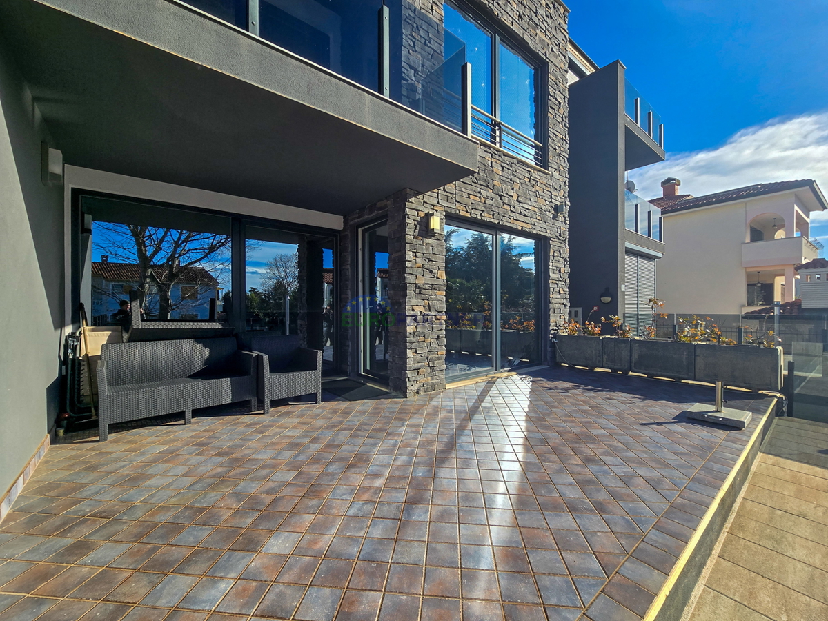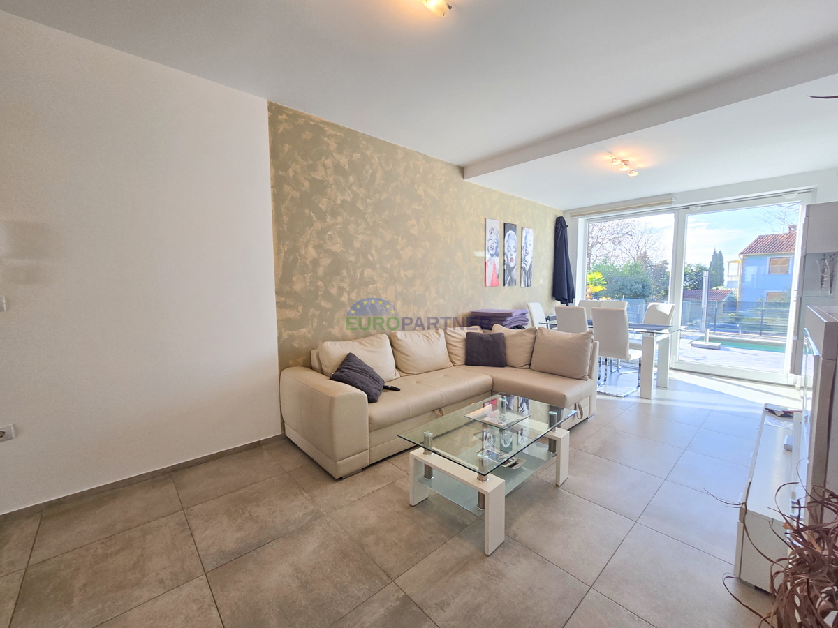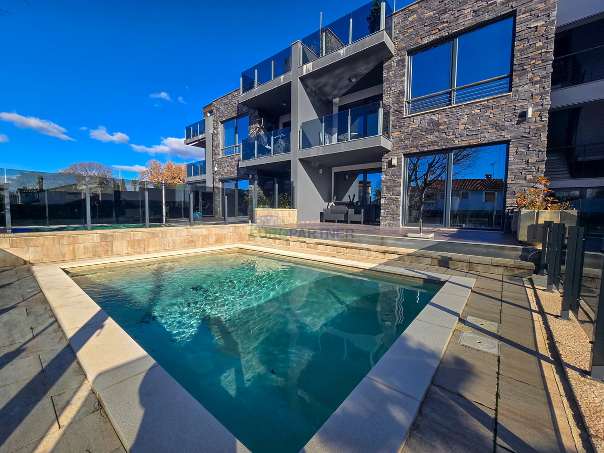 A beautiful luxury apartment with a swimming pool is for sale near Poreč. The apartment is located in a quiet residential area 5km from the center of Poreč and 3km from the first beach. The apartment also has its own garden of 110m2. The garden is locate