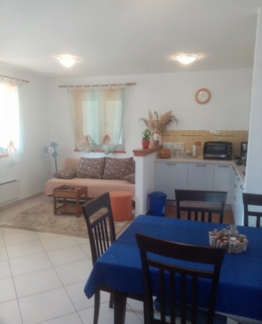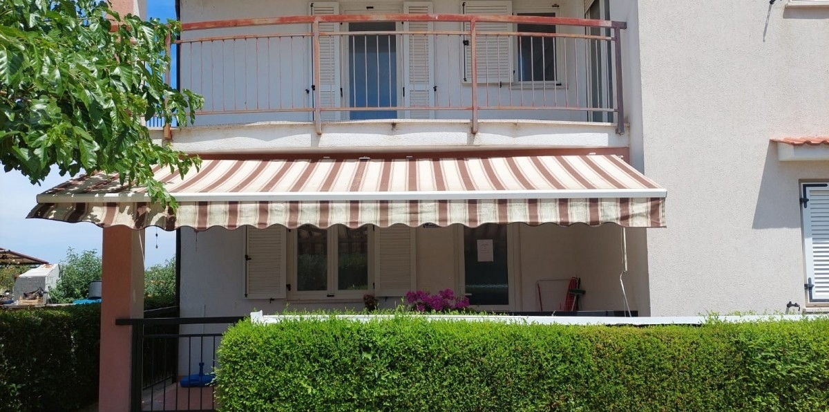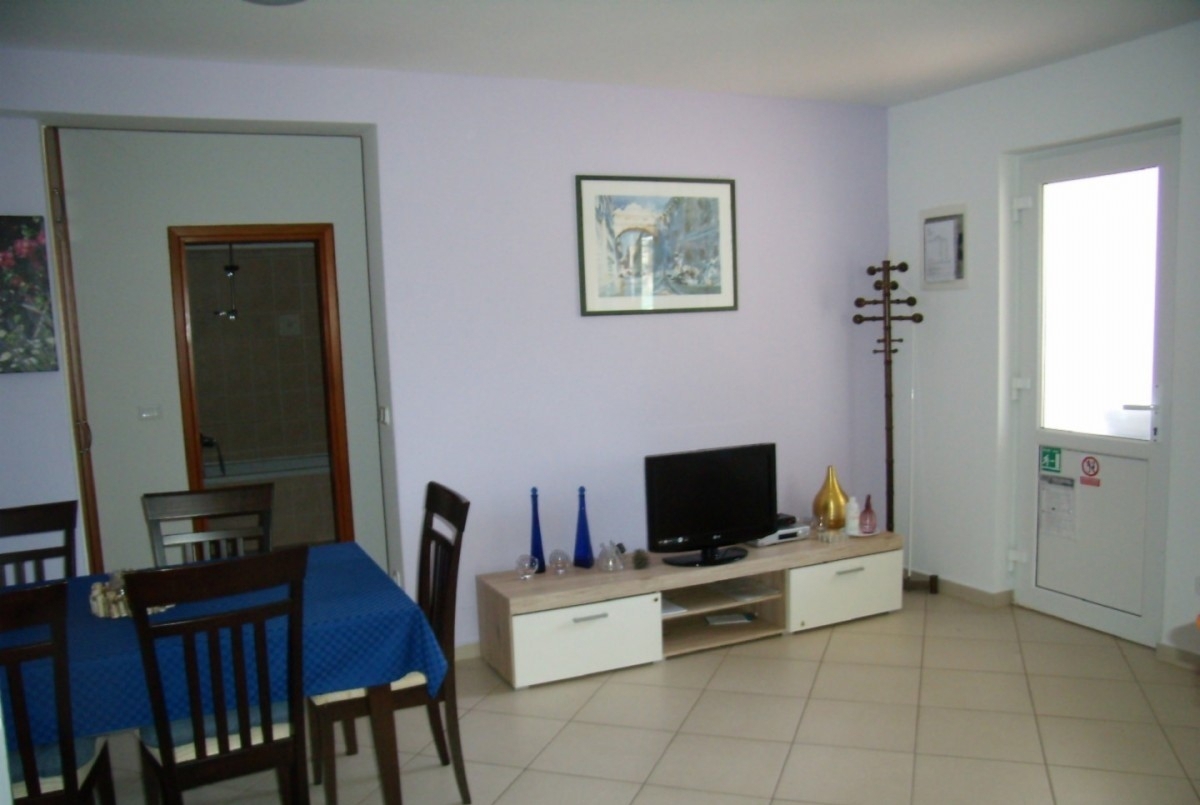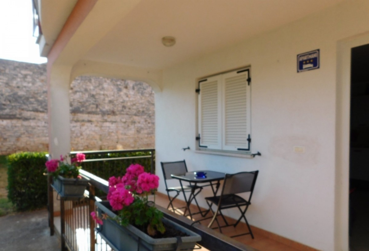 Poreč, old Červar, excellent apartment for sale on the ground floor of a residential building, surface area 52m2, in a quiet location. It consists of a covered terrace of 5.38 m2, an open space living room, kitchen and dining room of 26.19 m2, a bathroom