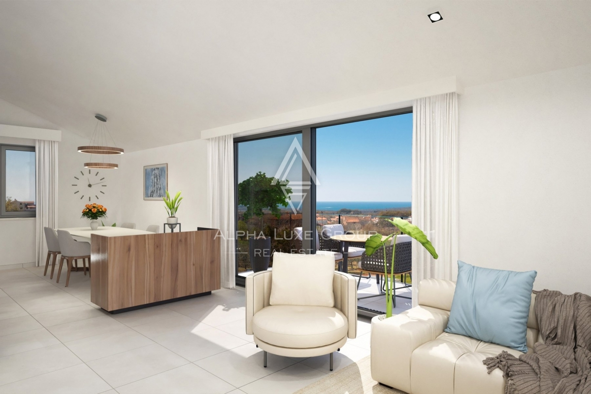Situated on the outskirts of Poreč, this brand-new two-bedroom apartment offers modern living and breathtaking sea views. Located on the first floor of a stylish residential building currently under construction, this apartment spans 74.49 m² and is desig