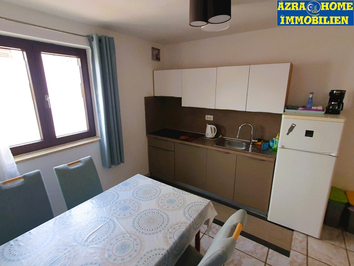 Poreč, about 1 km from the city center, about 500 m from the beach (Brulo beach). Apartment on the 2nd floor, 55.94 m² (50,08m2 : hallway, bedroom, bathroom, kitchen, living room + 5,86 m2 terrace). The apartment is being sold furnished. The building in w