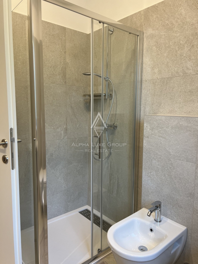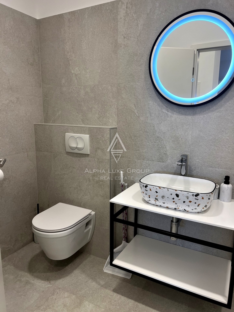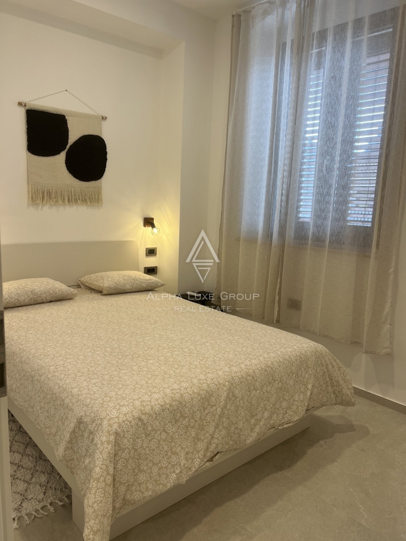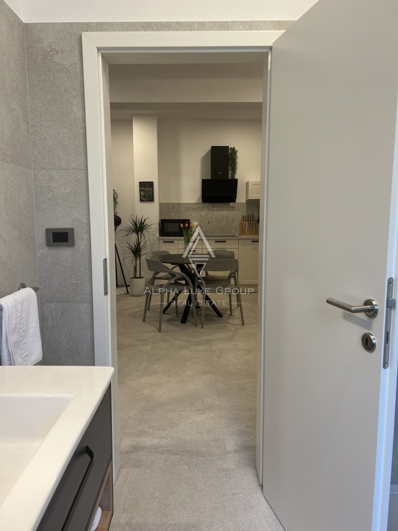 ALPHA LUXE GROUP is selling a beautifully decorated new apartment near the sea and the centre. The apartment is located on the second floor of the building and consists of an entrance hall, living room with kitchen and dining room, two bedrooms and two