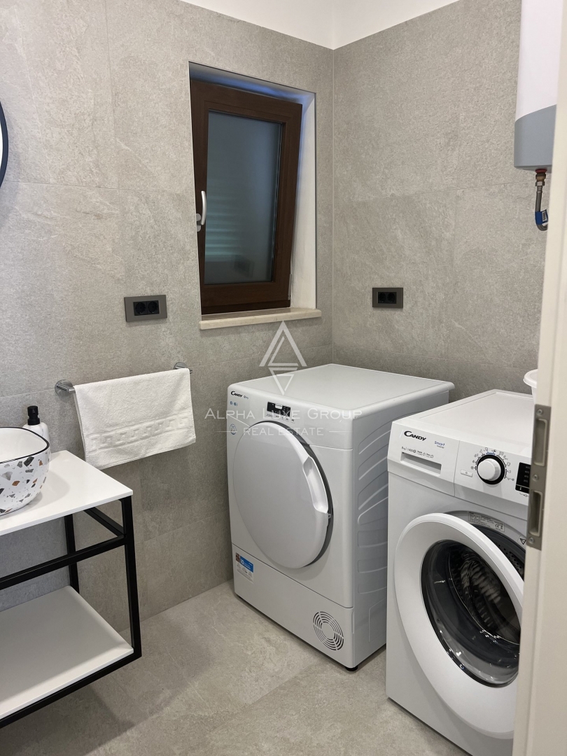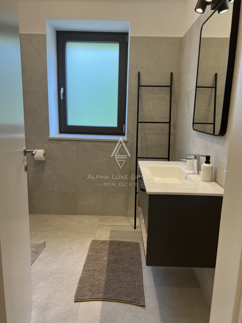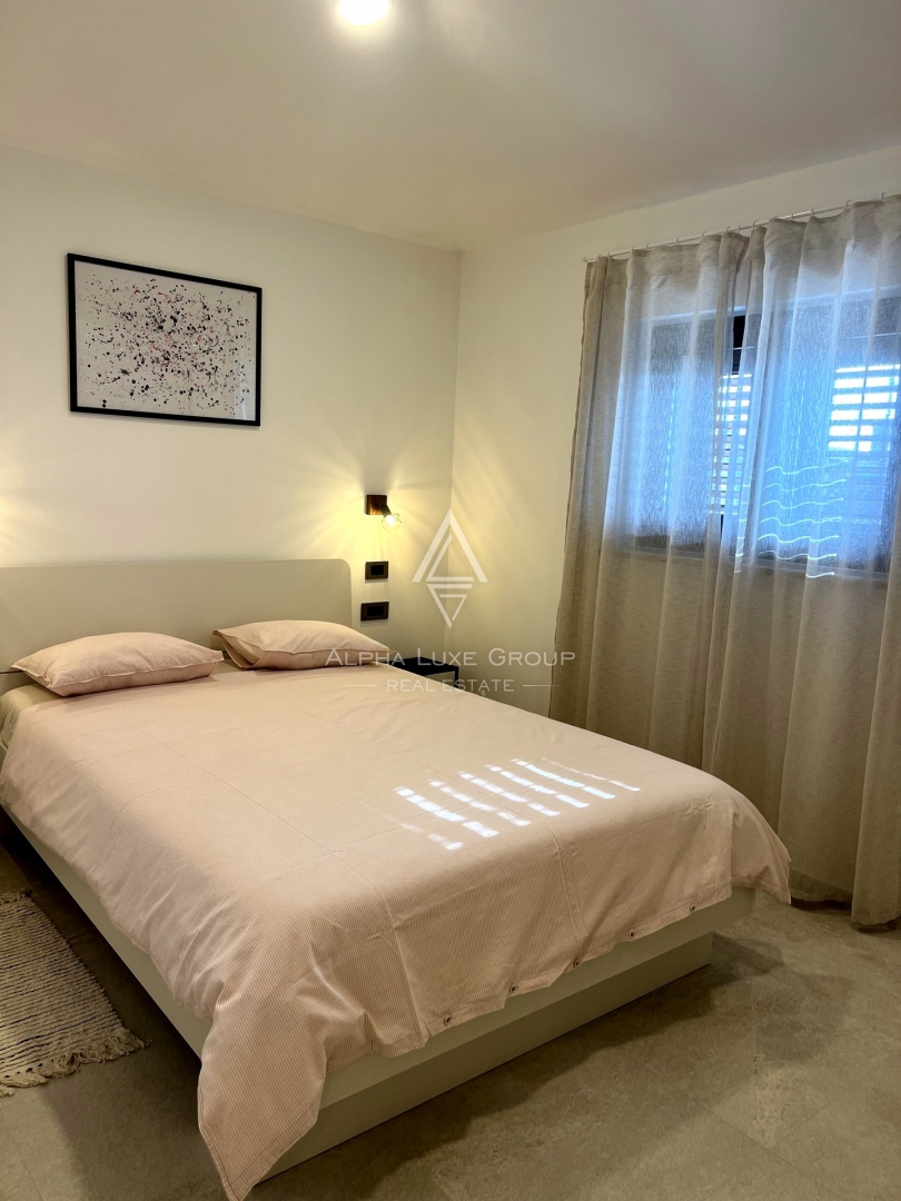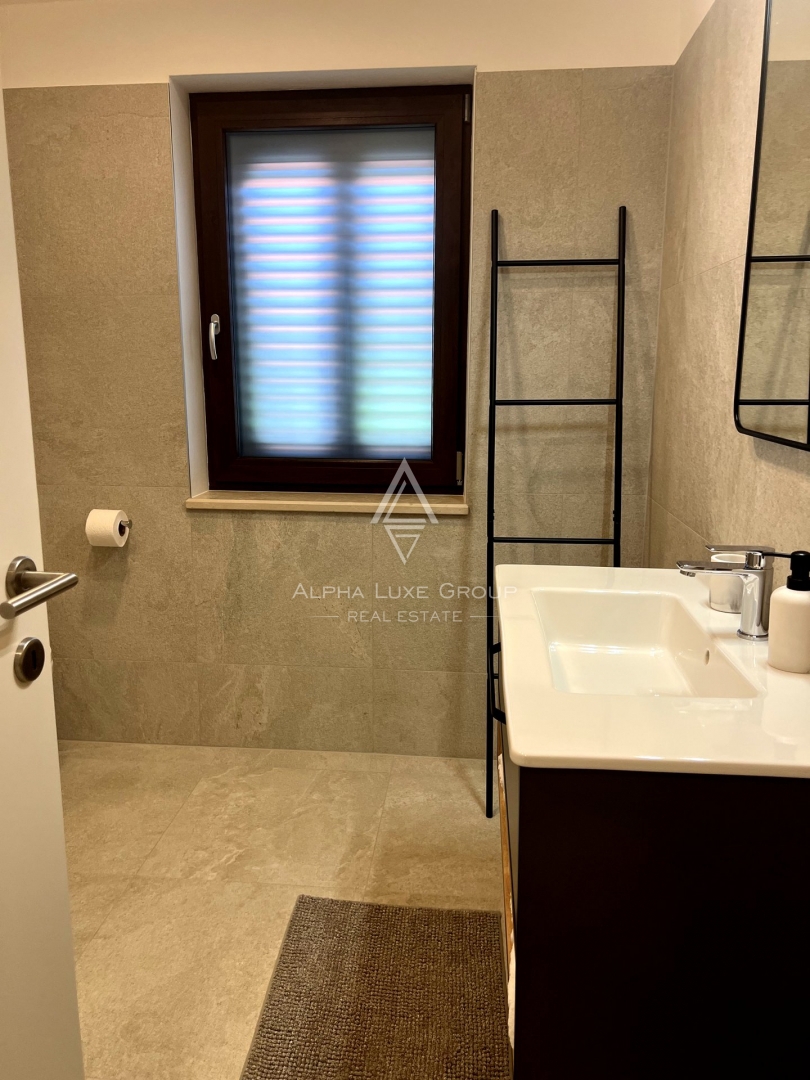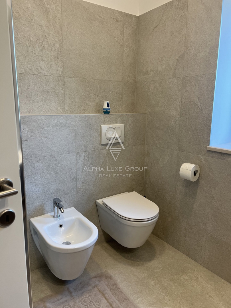 ALPHA LUXE GROUP is selling a beautifully decorated new apartment near the sea and the centre. The apartment is located on the second floor of the building and consists of an entrance hall, living room with kitchen and dining room, two bedrooms and two