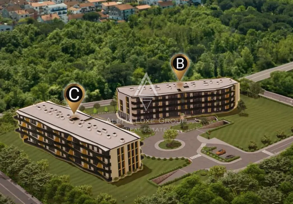 Discover a prestigious residential and commercial development comprising two buildings featuring 82 premium apartments, 2 commercial spaces, 2 underground garages, and elevators, designed to provide an exceptional lifestyle in the heart of Poreč. Situate