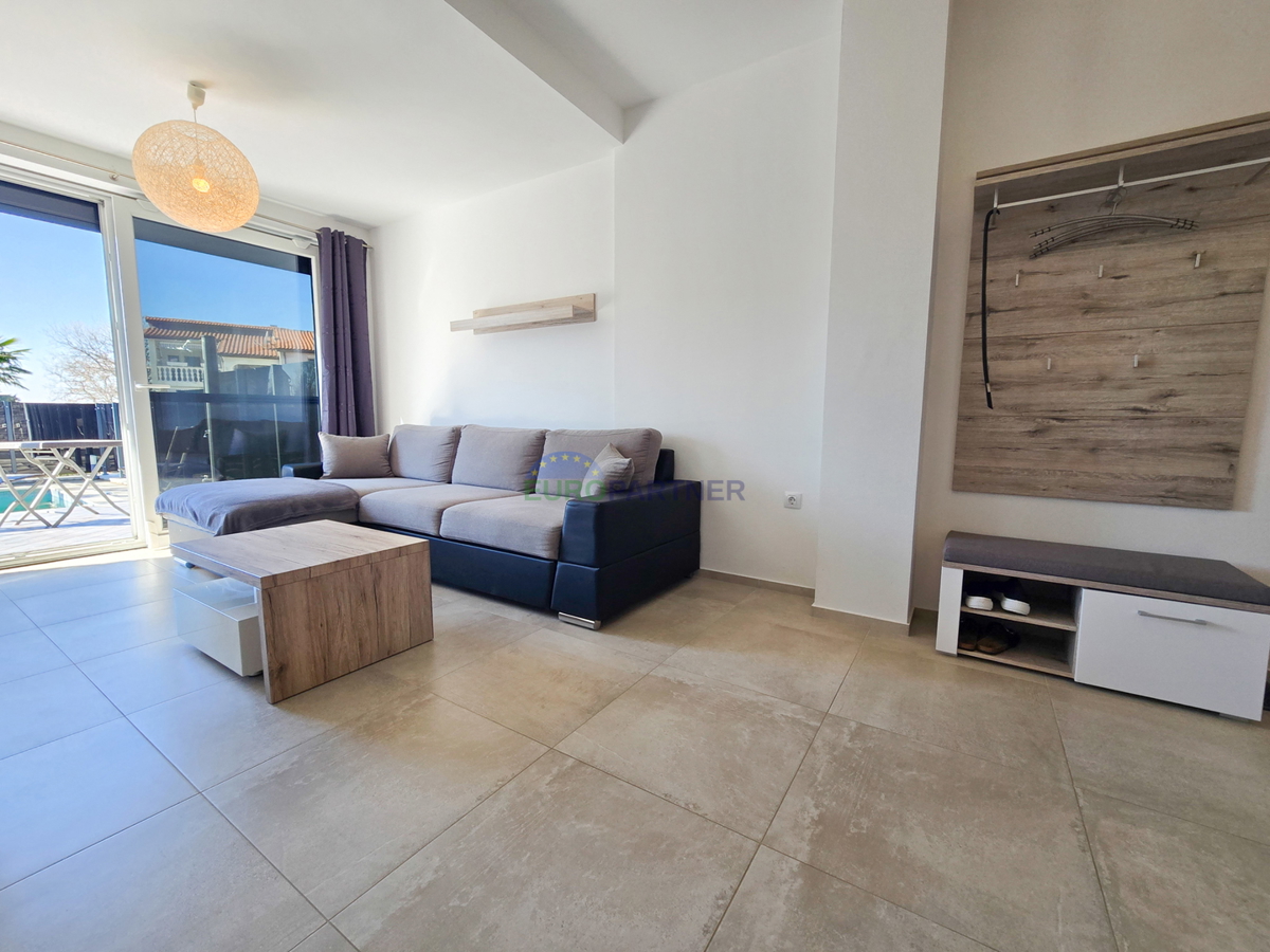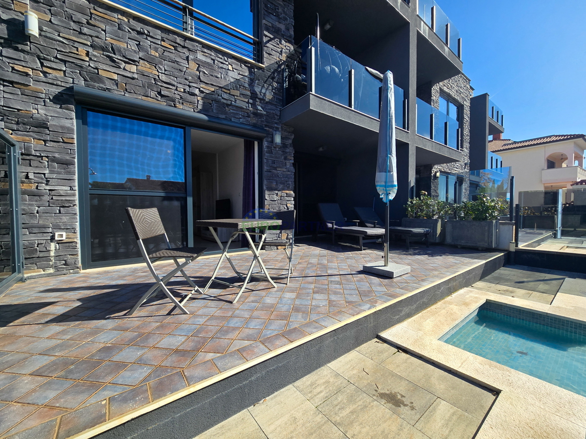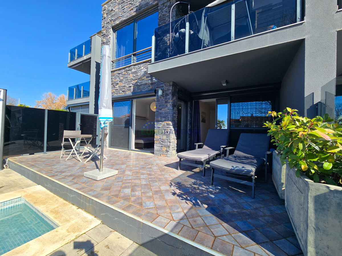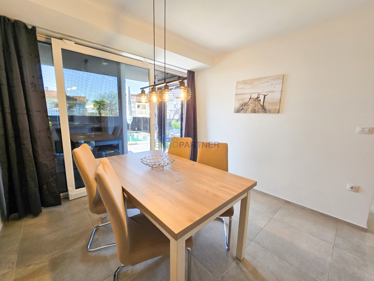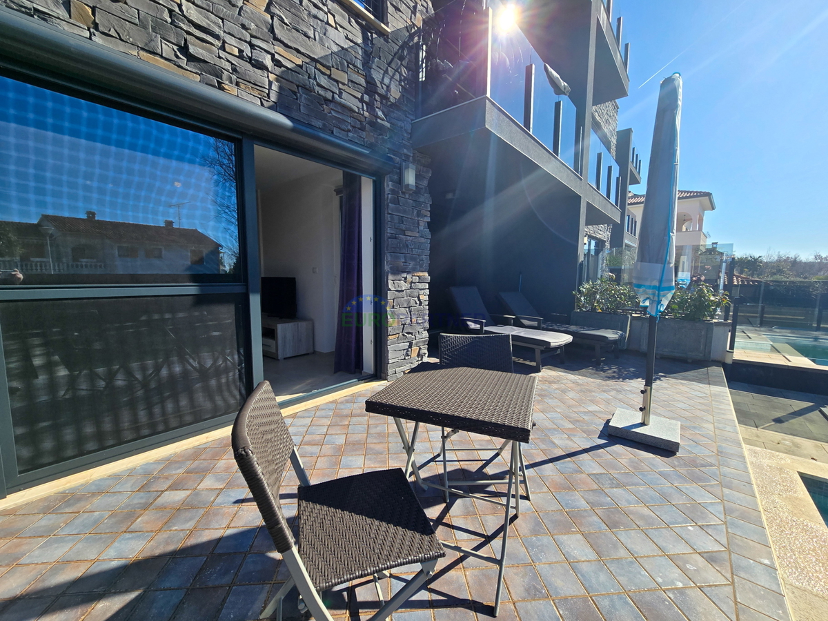 A beautiful luxury apartment with a swimming pool near Poreč is for sale. The apartment is located in a quiet residential area 5km from the center of Poreč and 3km from the first beach. The apartment also has its own garden of 100m2. The garden is locate