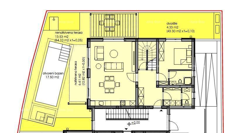 We are selling a luxury apartment in the municipality of Tar with a courtyard and an outdoor pool, and the apartment offers a beautiful view of the sea. The apartment is located in a building with a total of 4 apartments. The apartment extends over 2 floo