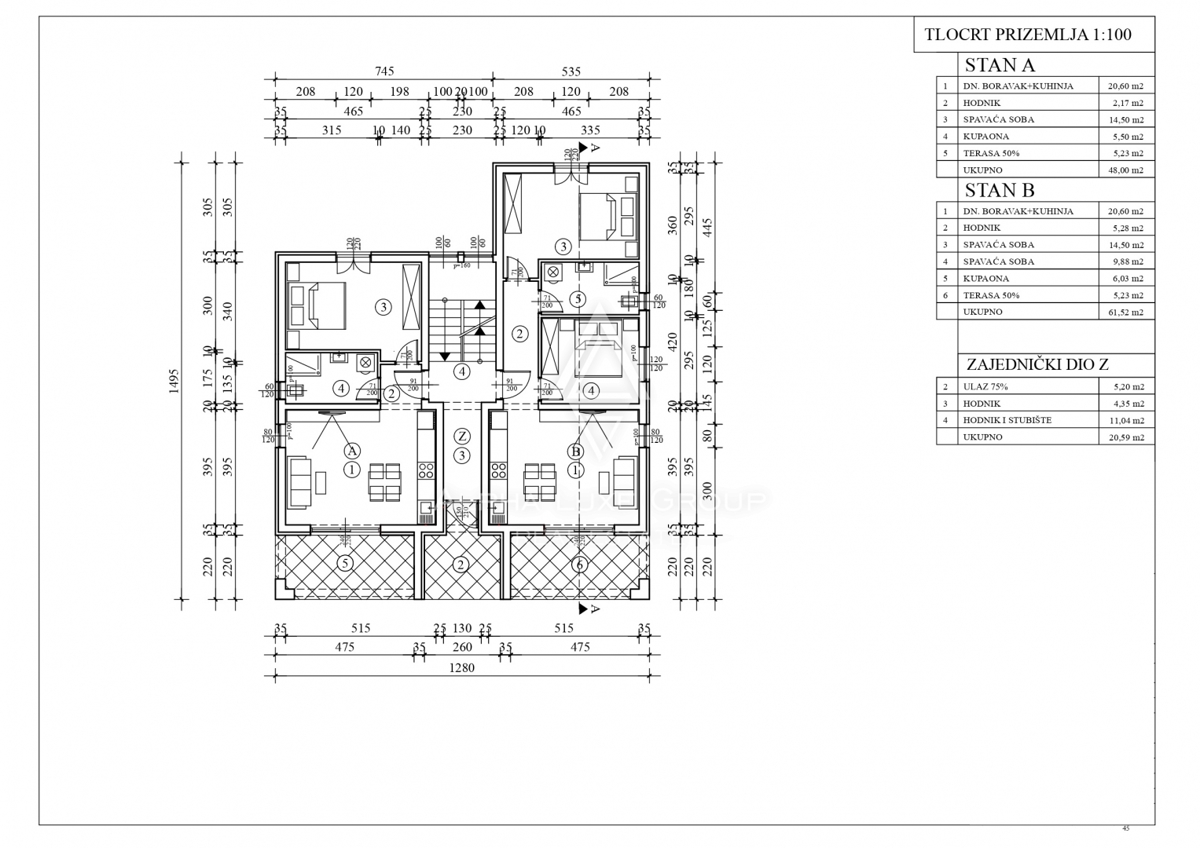 These newly constructed apartments offer a blend of modern style and high-quality finishes. Ceramic tiles are featured in all living spaces, priced up to €25/m², while bedrooms include laminate flooring of the same value. Kitchens and bathrooms are elegan