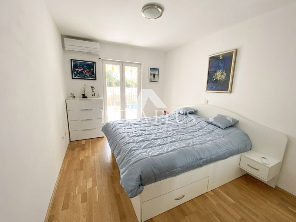 S302 Poreč, Spacious apartment on the ground floor with garden and swimming pool At a distance of 900 meters from the sea and the first beaches, in an attractive and beautifully decorated location, there is an apartment with an area of 94.75 m². This