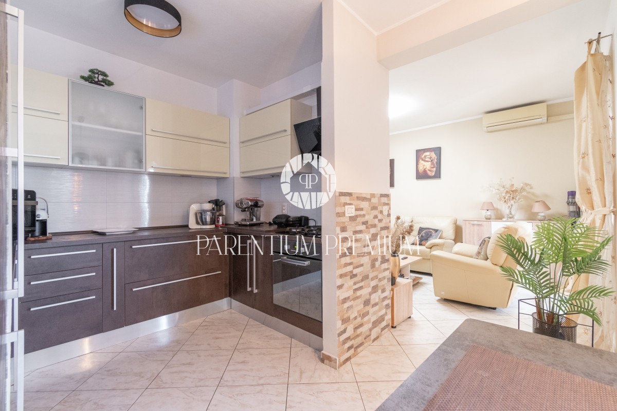 Istria, Poreč Ground floor apartment for sale in an attractive location in Poreč. The apartment has a total area of 58.49m2, and consists of an entrance hall, two bedrooms, bathroom, living room, dining room with kitchen and a terrace that can be acces