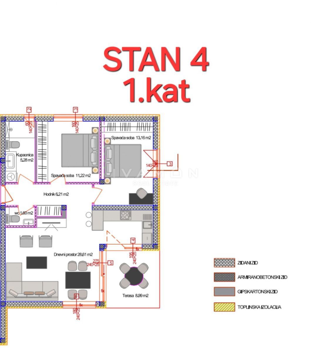 On a highly sought-after location, 3 km from the center of Poreč and 1.5 km from the beach, an apartment is for sale in a newly built building with five residential units. The apartment is located on the first floor of the building and has an area of 75