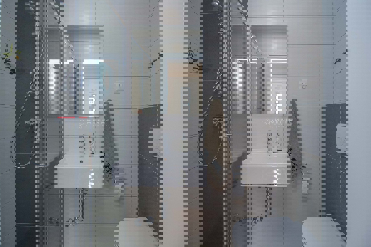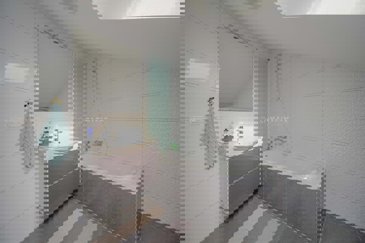 TWO-LEVEL APARTMENT WITH PRIVATE ENTRANCE – LIKE A HOUSE, IN A GREAT LOCATION NEAR THE BEACH WITH THREE BEDROOMS A spacious and bright two-level apartment for sale in one of the most sought-after and quiet parts of Poreč, just a few minutes walk from the