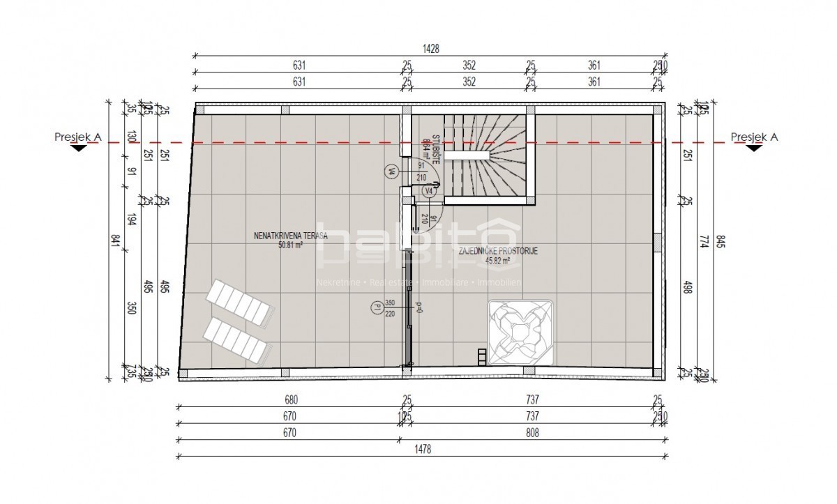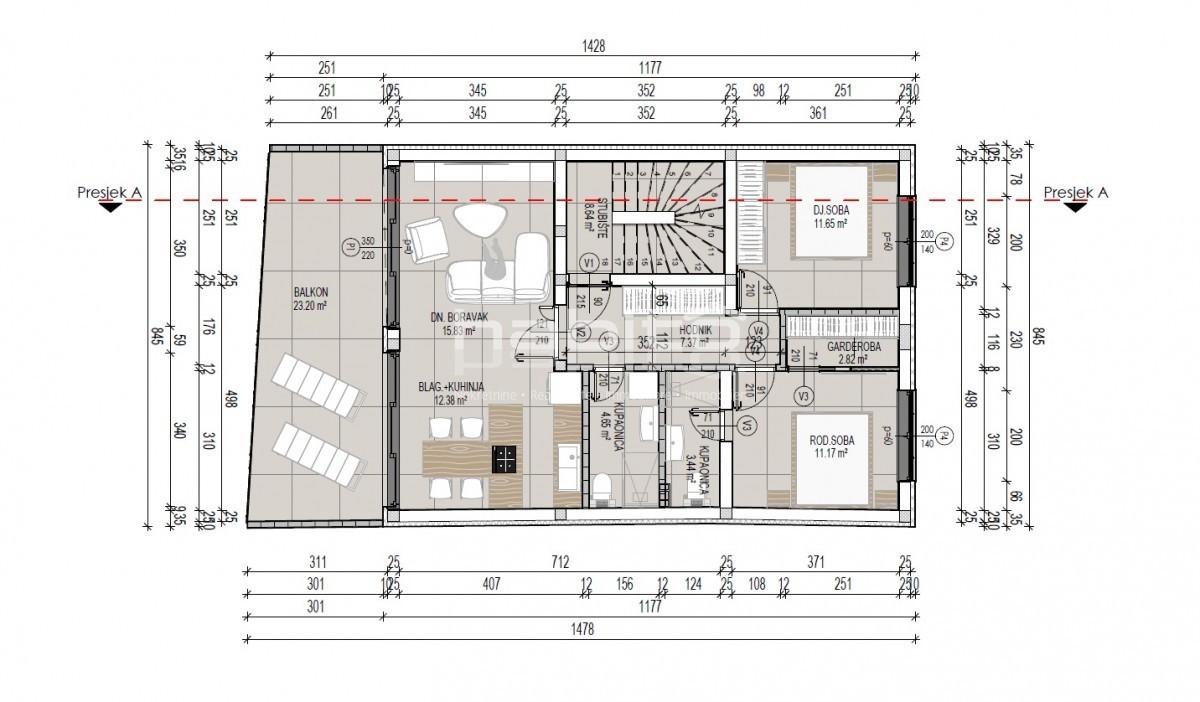 Poreč area, Tar - Luxury apartment on the 2nd and 3rd floor FOR SALE, SEA VIEW This apartment on the second floor (69.31 m2 + balcony 22.44 m2) offers something special! In addition to two bedrooms, two bathrooms and an open living area, there are also t