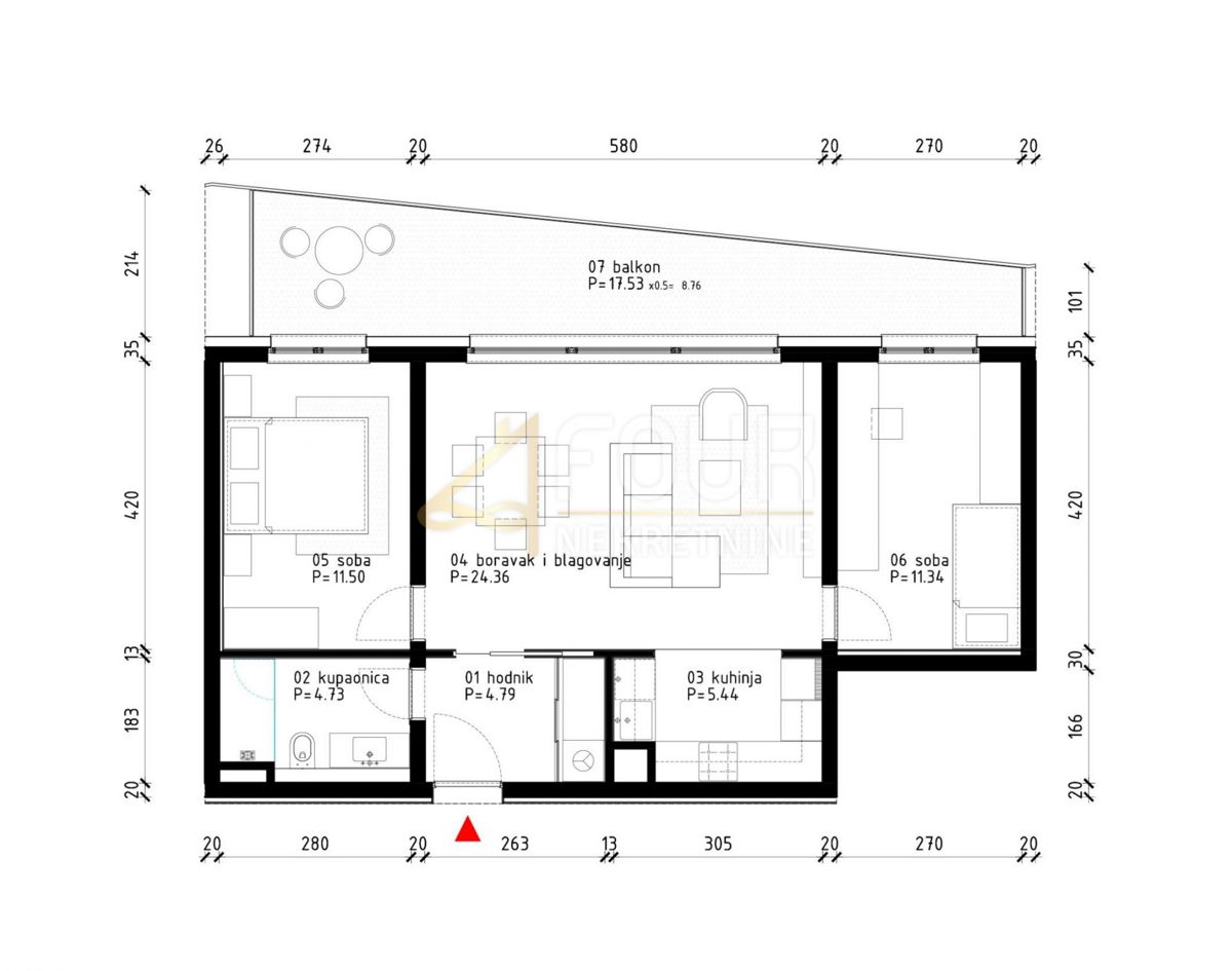 A modern apartment in a new building is for sale, located just 800 meters from the sea and a 7-minute walk to the first beaches! Completion of works planned for 2025. The apartment with an area of 72.11m2 consists of two bedrooms, an open living room wi