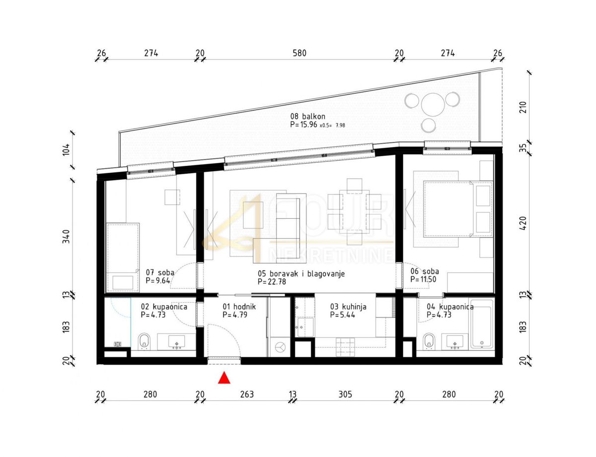 A modern apartment in a new building is for sale, located just 800 meters from the sea and a 7-minute walk to the first beaches! Completion of works planned for 2025. The apartment with an area of 72.69m2 consists of two bedrooms, an open living room wi
