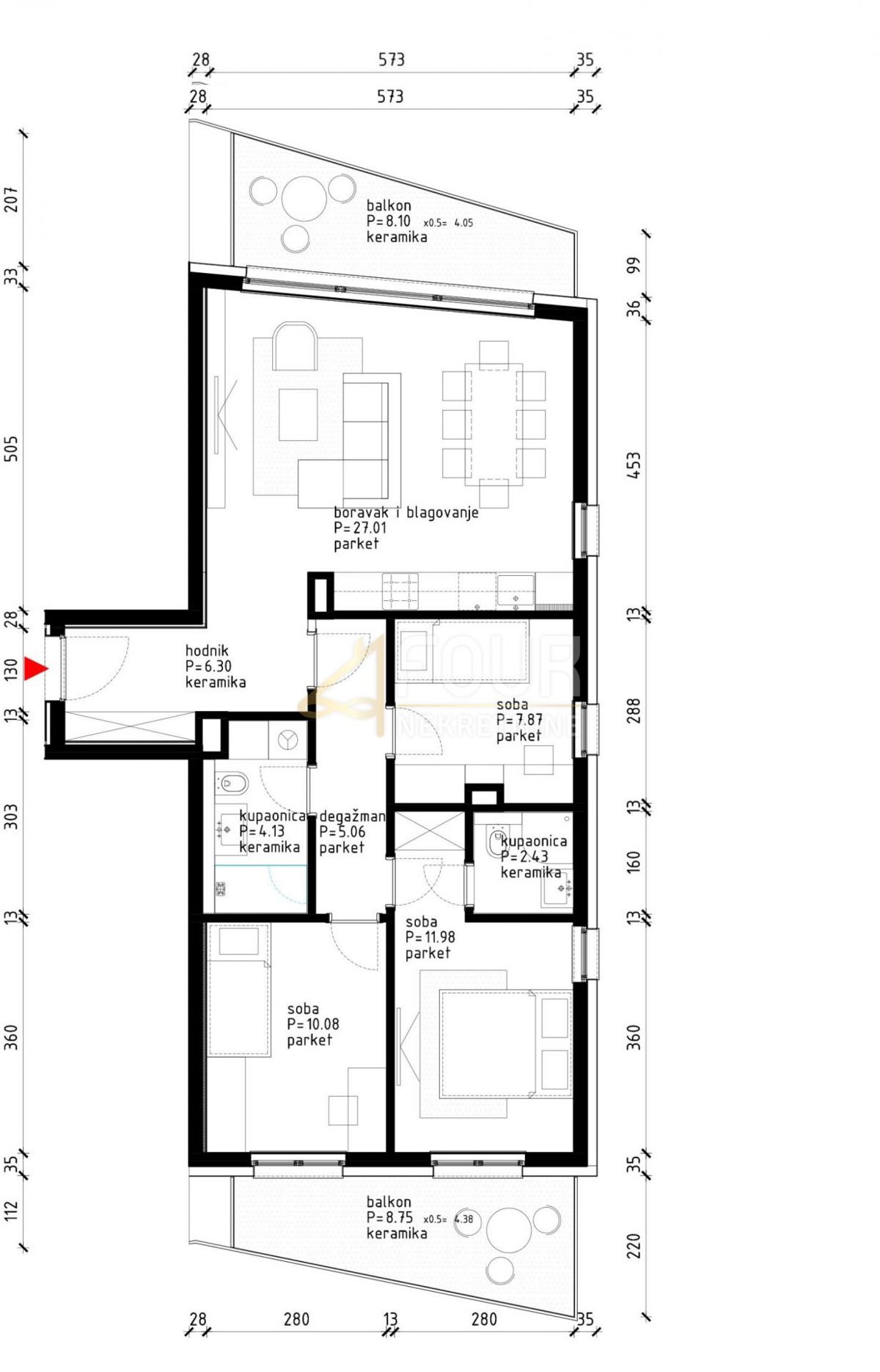 A modern apartment in a new building is for sale, located just 800 meters from the sea and a 7-minute walk to the first beaches! Completion of works planned for 2025. The apartment with an area of 84.59m2 consists of three bedrooms, an open living room