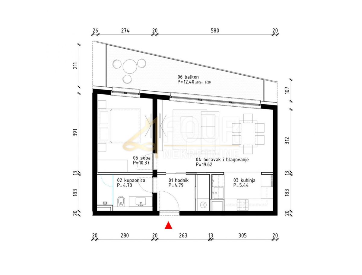 A modern apartment in a new building is for sale, located just 800 meters from the sea and a 7-minute walk to the first beaches! Completion of works planned for 2025. The apartment with an area of 52.45m2 consists of a bedroom, an open living room with