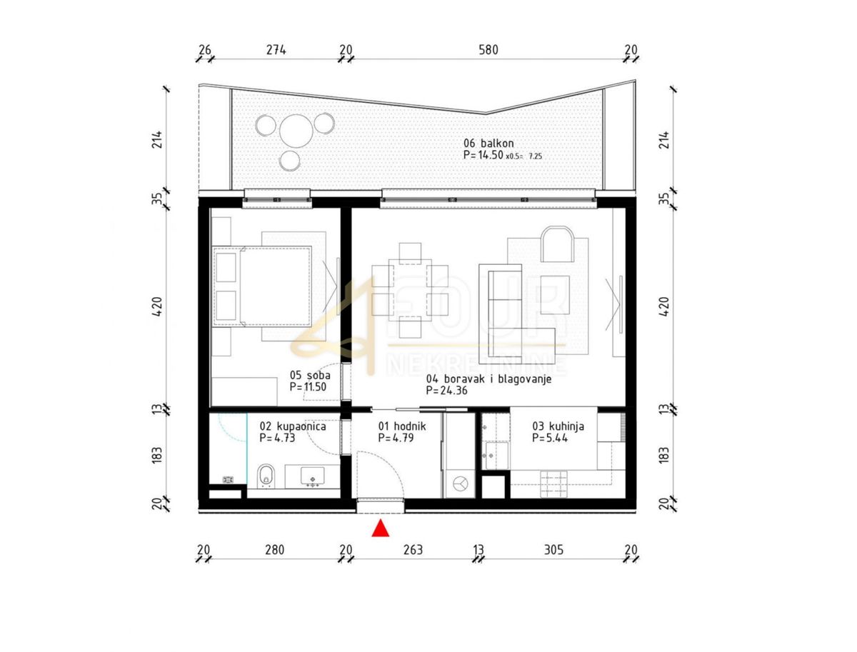 A modern apartment in a new building is for sale, located just 800 meters from the sea and a 7-minute walk to the first beaches! Completion of works planned for 2025. The apartment with an area of 59.37m2 consists of a bedroom, an open living room with