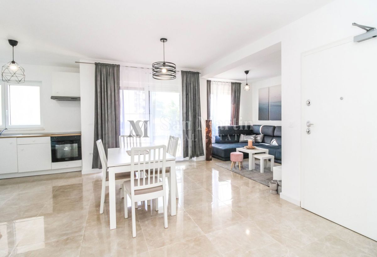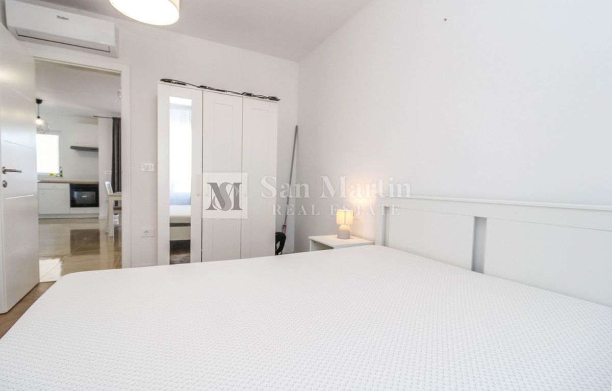 Poreč, Istria In an attractive and amenity-rich small town near Poreč, this beautiful three-bedroom apartment is for sale. The apartment is located in a small residential building built in 2022. High-quality construction. The apartment is located on the g